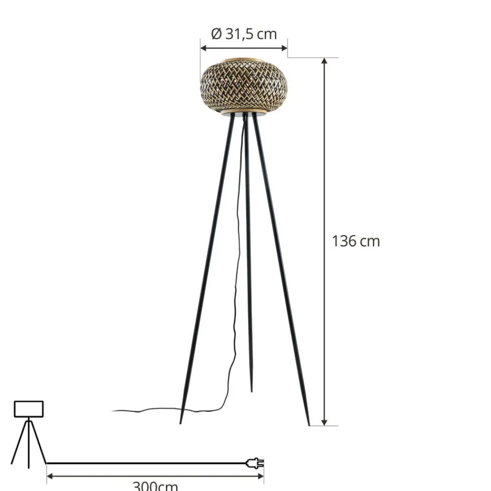 Gulvlampe Nerys – den markante trefodslampe til indendørs brug Denne gulvlampe afrunder din indretning på dekorativ vis. Du kan nemt tænde og slukke for gulvlampen med en kontakt. Vælg førsteklasses kvalitet fra Lindby-mærket med denne lampe. Med sit smukke udseende fuldender lampen belysningskonceptet i dit opholdsrum på en stilfuld måde. Den fås i farverne sort og træ. Lampen skaber et flot look og tilfører atmosfære til dine rum. Der kræves pærer med E27-sokkel til fatningen. Gulvlampen er ideel til at harmonisere designet i ethvert opholdsrum. Fordyb dit hjem i hygge med denne lampe.