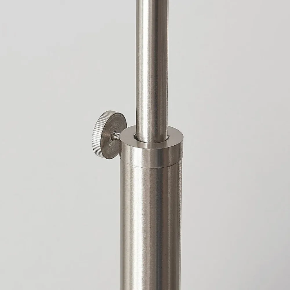 Elegant Railyn buet gulvlampe med cylindrisk tekstilskærm Railyn er en gulvlampe i form af en bue, der kan bruges meget godt i stuen, hvor den giver smuk accentbelysning om aftenen. Den buede form gør Railyn ideel til brug i umiddelbar nærhed af sofaer, for selv om der ikke er plads til basen på grund af sofaen, når lyset stadig det rigtige sted takket være dette design. Tekstilskærmen er cylindrisk og antikhvid, og lyset virker varmt og hyggeligt, præcis som man ønsker det i et opholdsrum. Med sit samlede udseende ser buelampen altid stilfuld ud og udstråler tidløs skønhed. Der kan bruges E27-pærer efter eget valg, og energibesparende LED-pærer anbefales især.