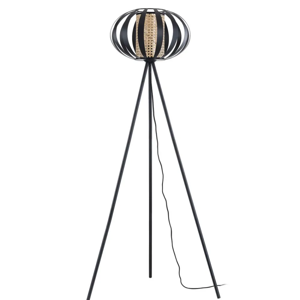 Lindby gulvlampe Tamira, sort, rattan, 143 cm høj, E27