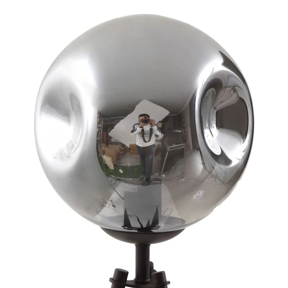Valentina gulvlampe med glasskærm i røgfarvet grå Valentina er en moderne gulvlampe, der består af et brunt jernstel og en røgfarvet grå glasskærm. Skærmen er ikke helt afrundet og har en konkav form. Den har dekorative fordybninger, som gør den til et særligt blikfang, selv når den er slukket. Lyset kommer hele vejen rundt og skaber en hyggelig atmosfære. Da lyskilden er fuldt synlig, er det ideelt at bruge en dekorativ lampe. Valentina tændes og slukkes ved hjælp af en fodkontakt. Gulvlampen kan f.eks. bruges som lyskilde i stuen.