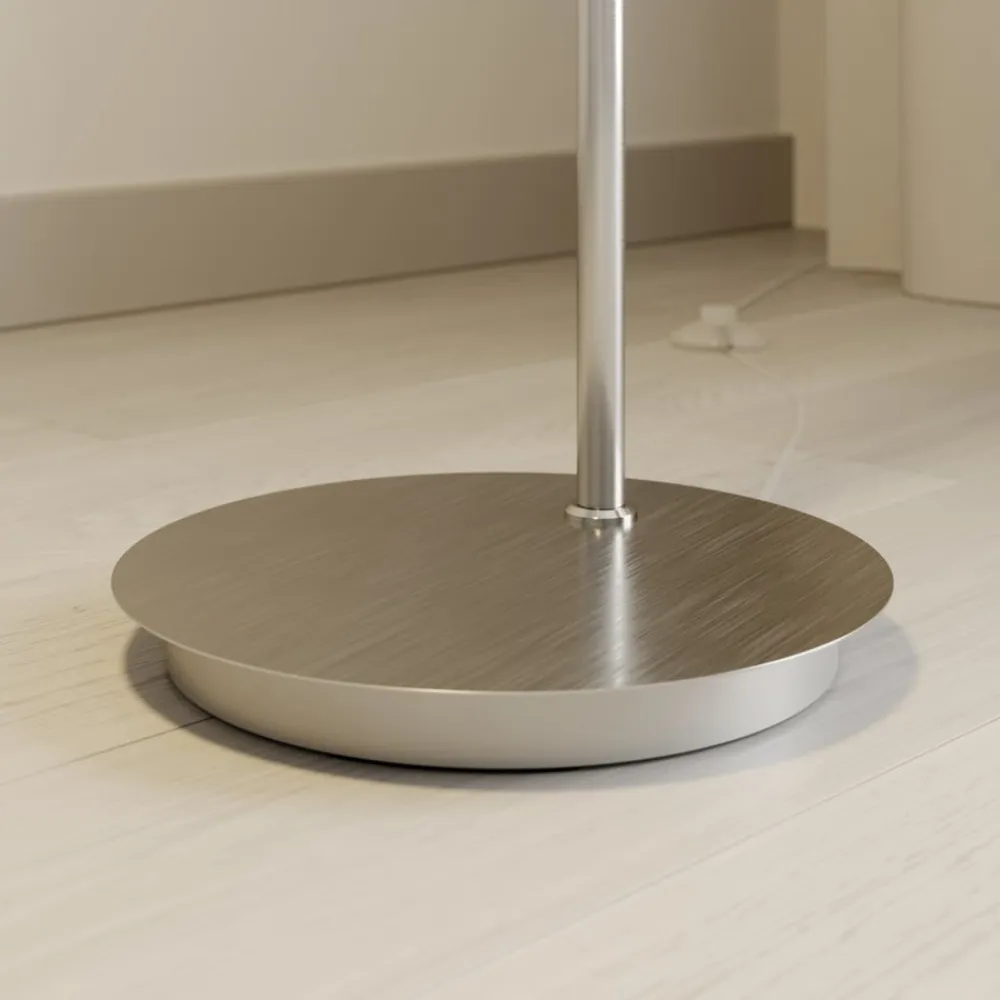 Denne ret kompakte buelampe er et meget flot supplement til stuen, hvor den skaber et behageligt lys, der er velegnet som aftenbelysning. Stativet har en mat nikkelfarvet overflade, der passer godt til moderne boligindretning, og den opalhvide skærm er lavet af glas. Gulvlampen kan nemt tændes og slukkes med en fodkontakt.