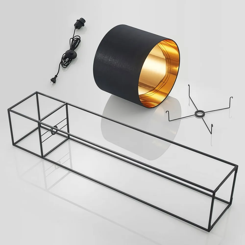 Kesta er en lyskilde dispenser til moderne værelser, der skal belyses i en stilfuld og forstærket måde. Skærmen er rund og sort, men indeni har den en guldglansfinish, der ikke kun står i kontrast til den sorte overflade, men også udstråler lyset fra E27-lampen pæn og varm, så rummet er præget af større komfort. Tekstil lampeskærmen suppleres med en filigran stel i en rektangulær burform, der består af fire stålstænger i sort. Dette passer meget godt sammen med resten af lampen og standerlampe til en lyskilde med det bestemt noget.