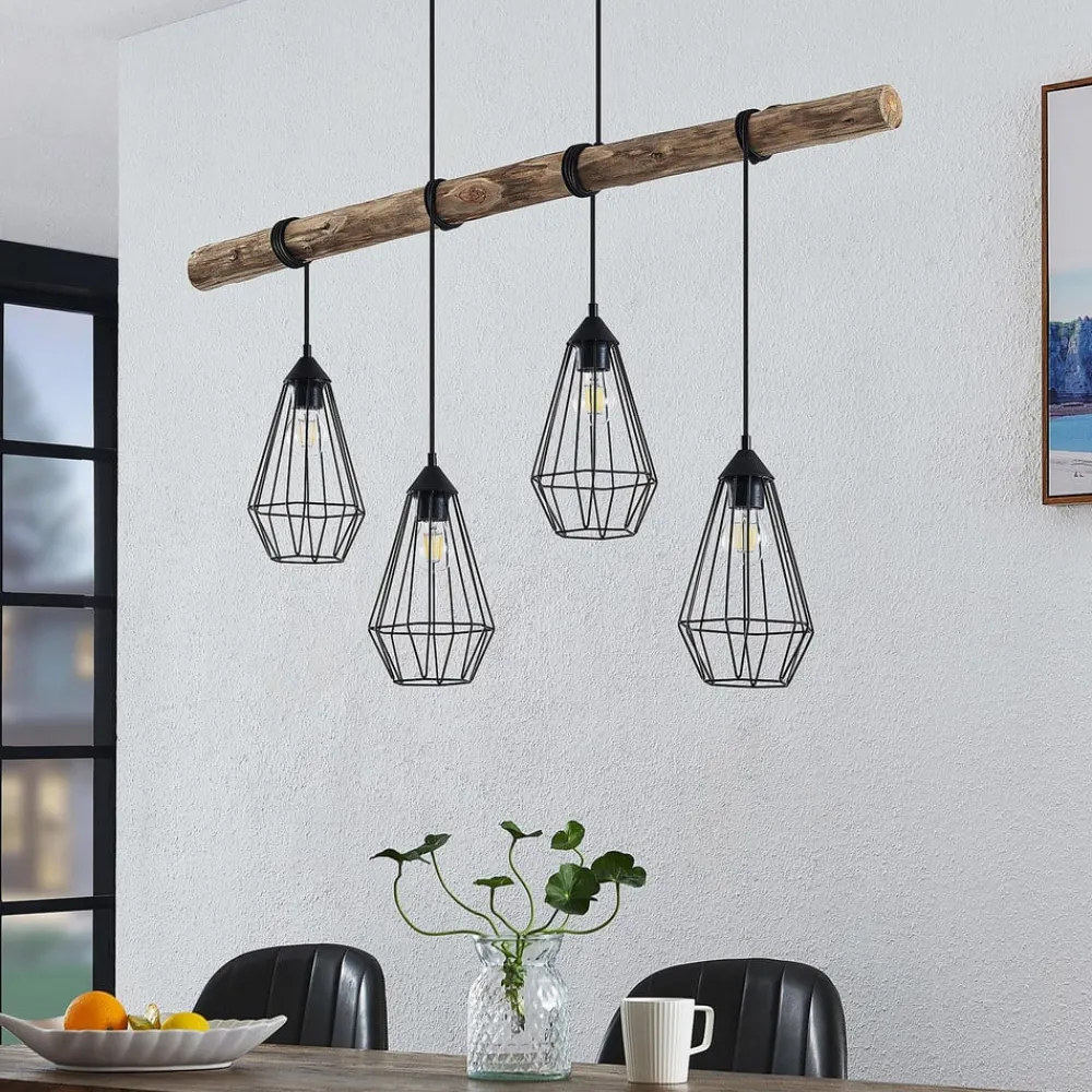 Lindby hængelampe Eldarion, 116 cm, 4 lyskilder, træ, E27