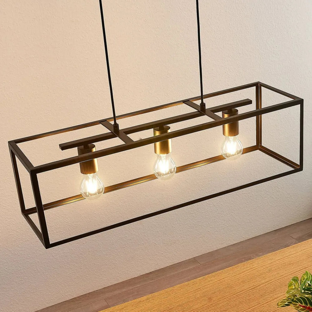 Rammeformet Emily-pendellampe i et kasseformet, åbent design Emily-pendellampen har en kantet lampeskærm i metal, som faktisk består af en kasseformet ramme. Det giver indtryk af en skærm, men det åbne design giver fuldt udsyn til de tre pærer, hvilket giver dem en særlig tilstedeværelse og gør dem til en visuel del af armaturet. De skal derfor vælges med omhu, og designet suppleres særligt godt af såkaldte rustikke lyspærer, som nu fås med LED-teknologi og fremstår særligt nostalgiske. Pendellampen rummer også det evigt populære bur-look, som inspirerer med sin retrocharme.