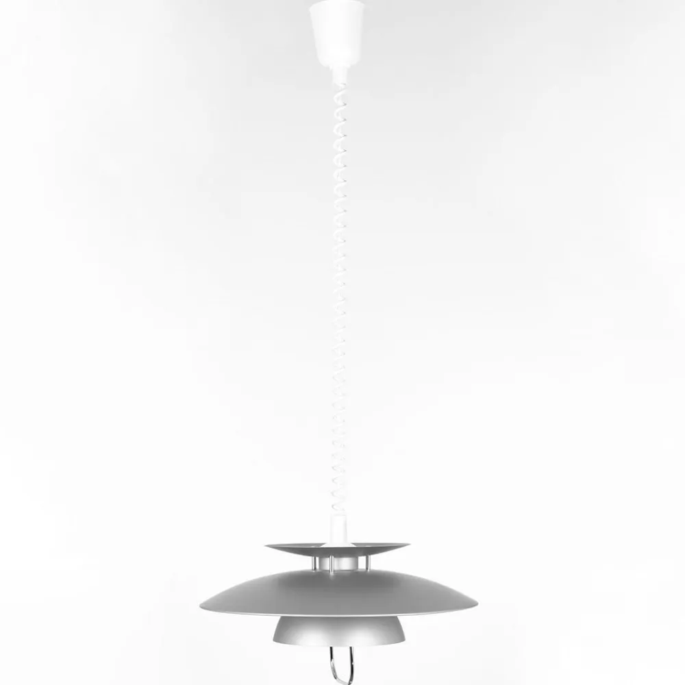 Højdejusterbar Nadija spisepladspendel med grå finish Denne pendellampe er beregnet til brug over en spiseplads, hvor den giver en god belysning af bordfladen og et hyggeligt lysskær i det hele taget. Hvor direkte eller indirekte lyset opleves, afhænger af, hvor højt skærmen er trukket op. Jo lavere den hænger, jo mindre direkte opleves lyset af de tilstedeværende. Takket være den spiralformede højdejusterbar kan højden justeres hurtigt og nemt – hver dag, hvis det er nødvendigt. Alt, hvad du skal gøre, er at give metalbeslaget i bunden af skærmen et hurtigt ryk. Den grå finish på hele ydersiden af skærmen er også værd at fremhæve. Det skaber en kølig elegance, som kan kombineres med mange stilfulde indretninger. Samlet set kan lampens stilistiske design kategoriseres som en del af det nordiske look, som også er meget populært i andre dele af Europa og værdsættes for sin designorienterede elegance.