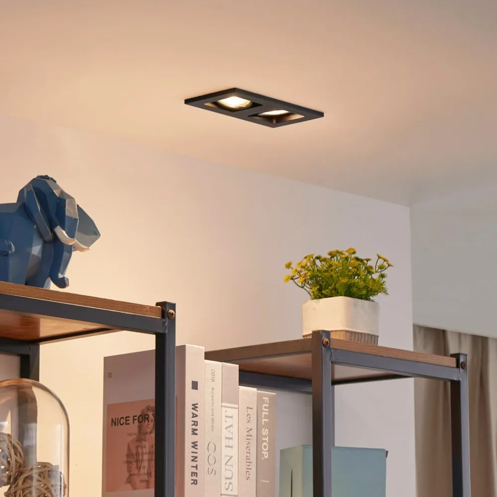 Lindby Indbygningsspots>downlight Thorid, sort, 19 x 10 cm, 2 lyskilder, GU10