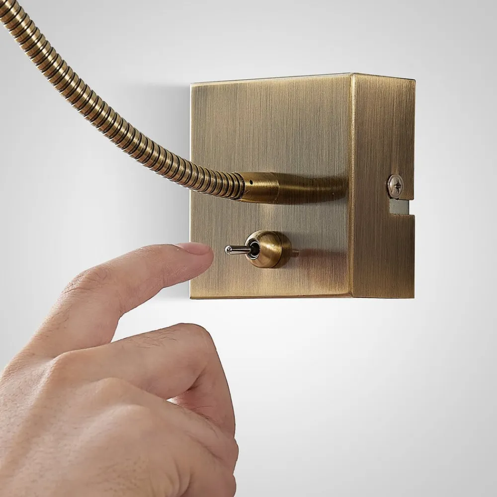 Lindby Jolka LED-læselampe, afbryder, antik messing