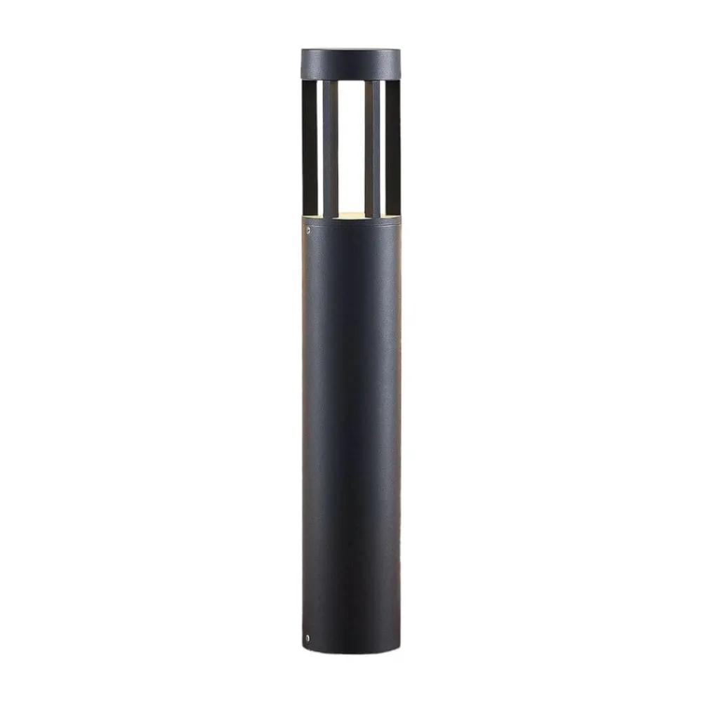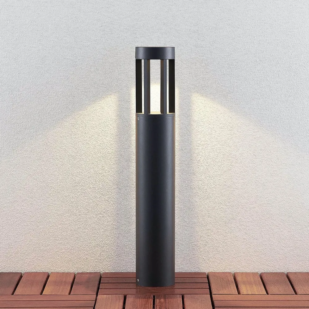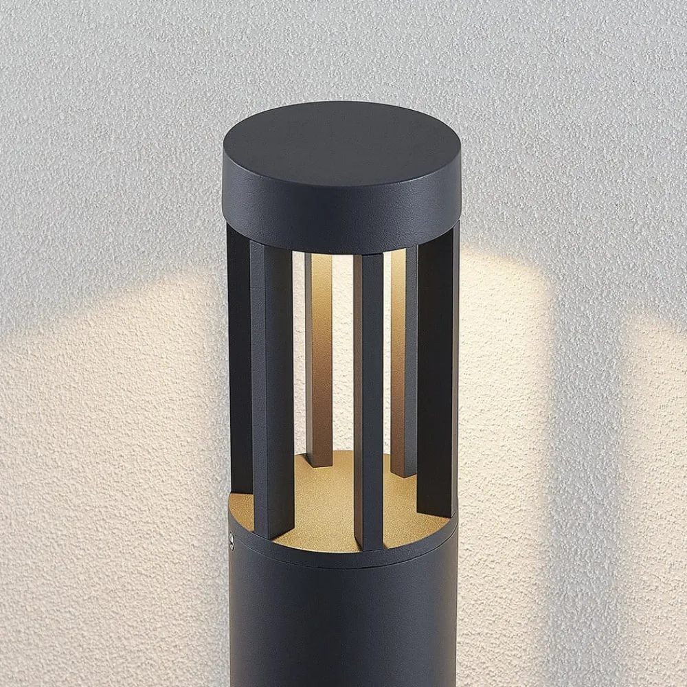 Rund, grå Jordis LED-vejlampe med smukt stangdesign Jordis LED-vejlampen passer meget godt ind i et moderne miljø. Lampekroppen er lavet af aluminium og har en mørkegrå finish med en tidløs effekt. De energibesparende LED’er er placeret i den øverste del af stibelysningen og spotlighter nedad, hvilket skaber et blændfrit, effektivt lysmønster. LED pullert’en kan bruges til forsigtigt at give orientering i haven eller på gårdspladsen og gøre snublefarer synlige i god tid, så du er mere sikker på vejen, selv efter mørkets frembrud.