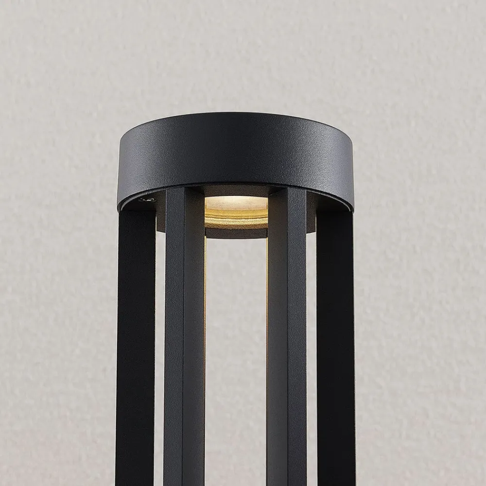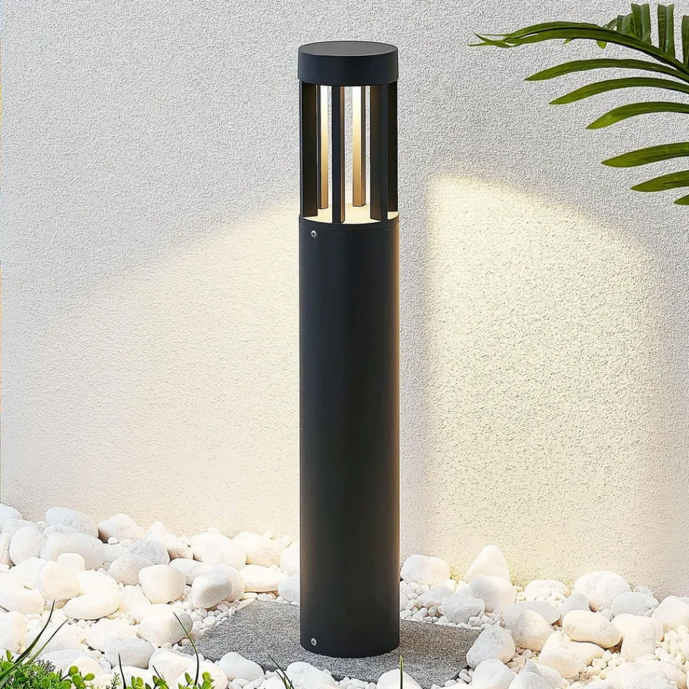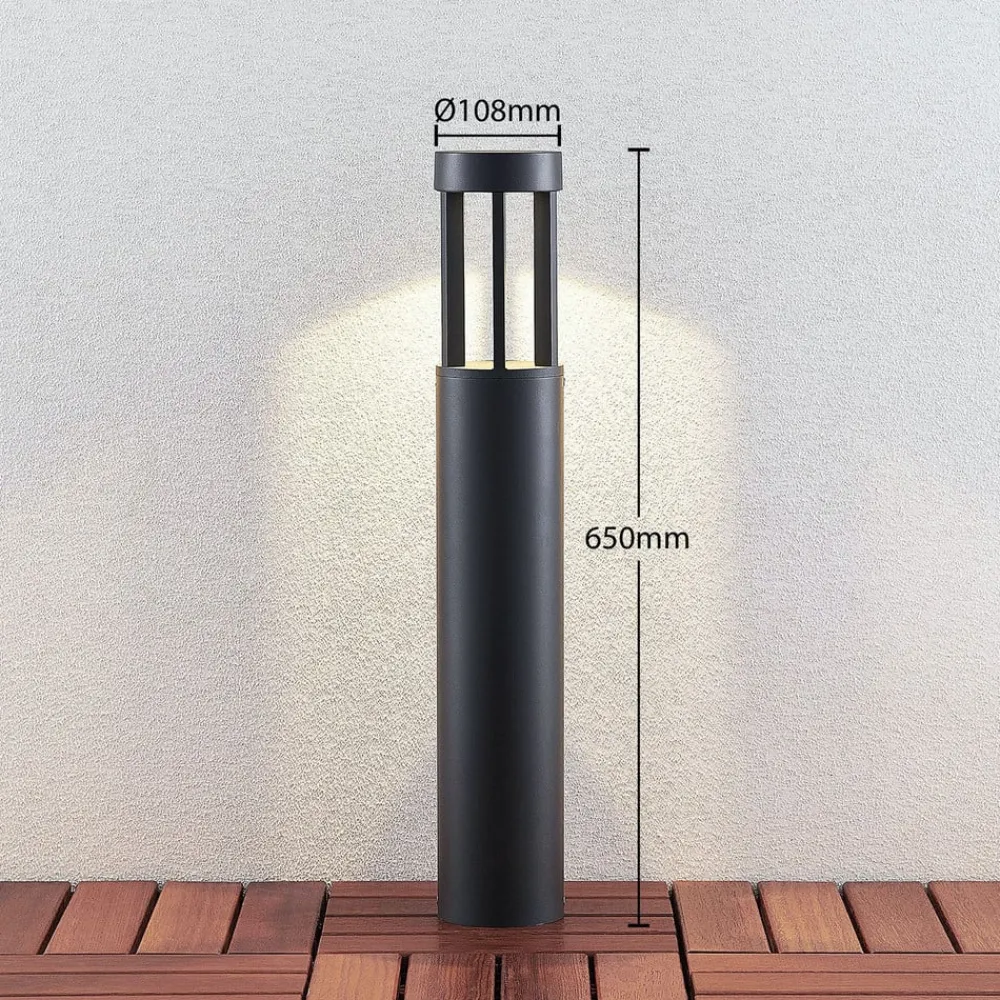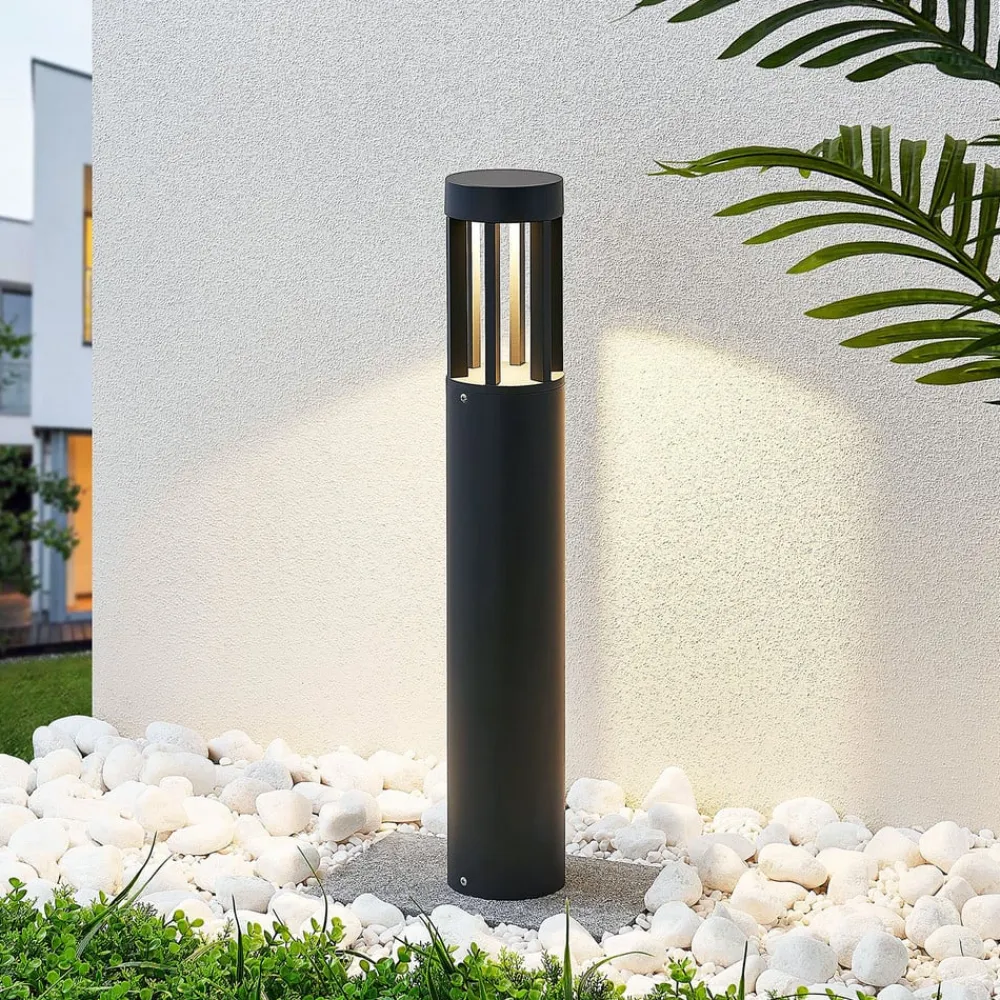 Rund, grå Jordis LED-vejlampe med smukt stangdesign Jordis LED-vejlampen passer meget godt ind i et moderne miljø. Lampekroppen er lavet af aluminium og har en mørkegrå finish med en tidløs effekt. De energibesparende LED’er er placeret i den øverste del af stibelysningen og spotlighter nedad, hvilket skaber et blændfrit, effektivt lysmønster. LED pullert’en kan bruges til forsigtigt at give orientering i haven eller på gårdspladsen og gøre snublefarer synlige i god tid, så du er mere sikker på vejen, selv efter mørkets frembrud.