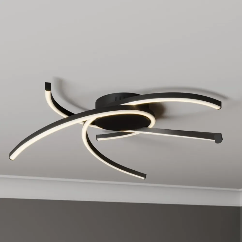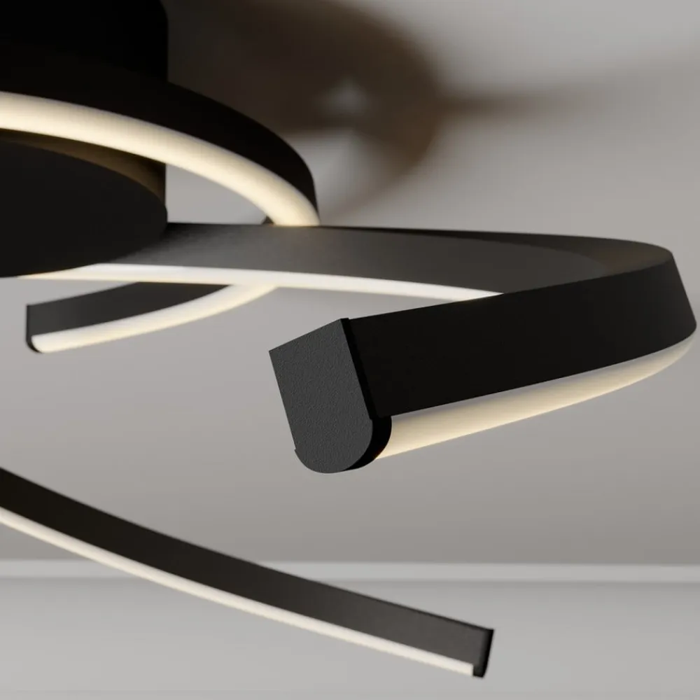 Mat sort Katris LED-loftlampe med tre lysende buer, kan dæmpes via kontakten