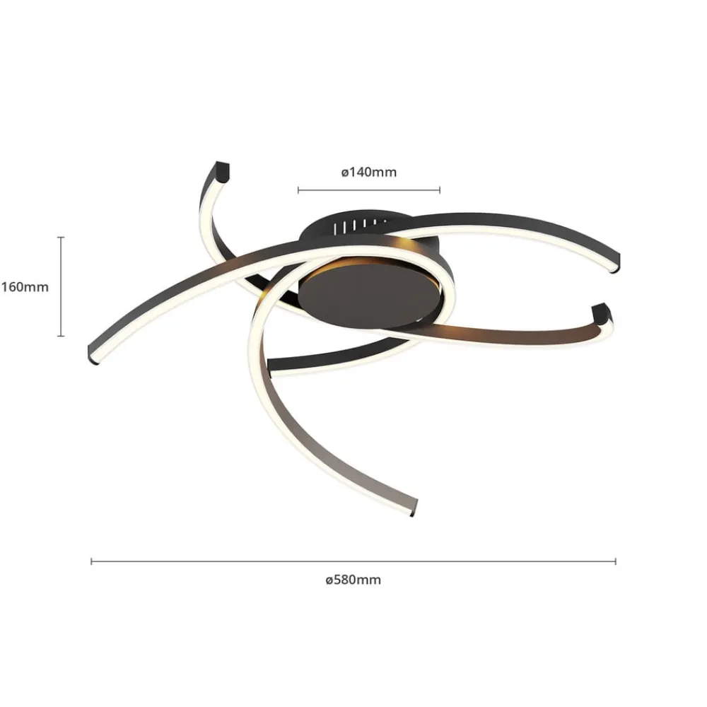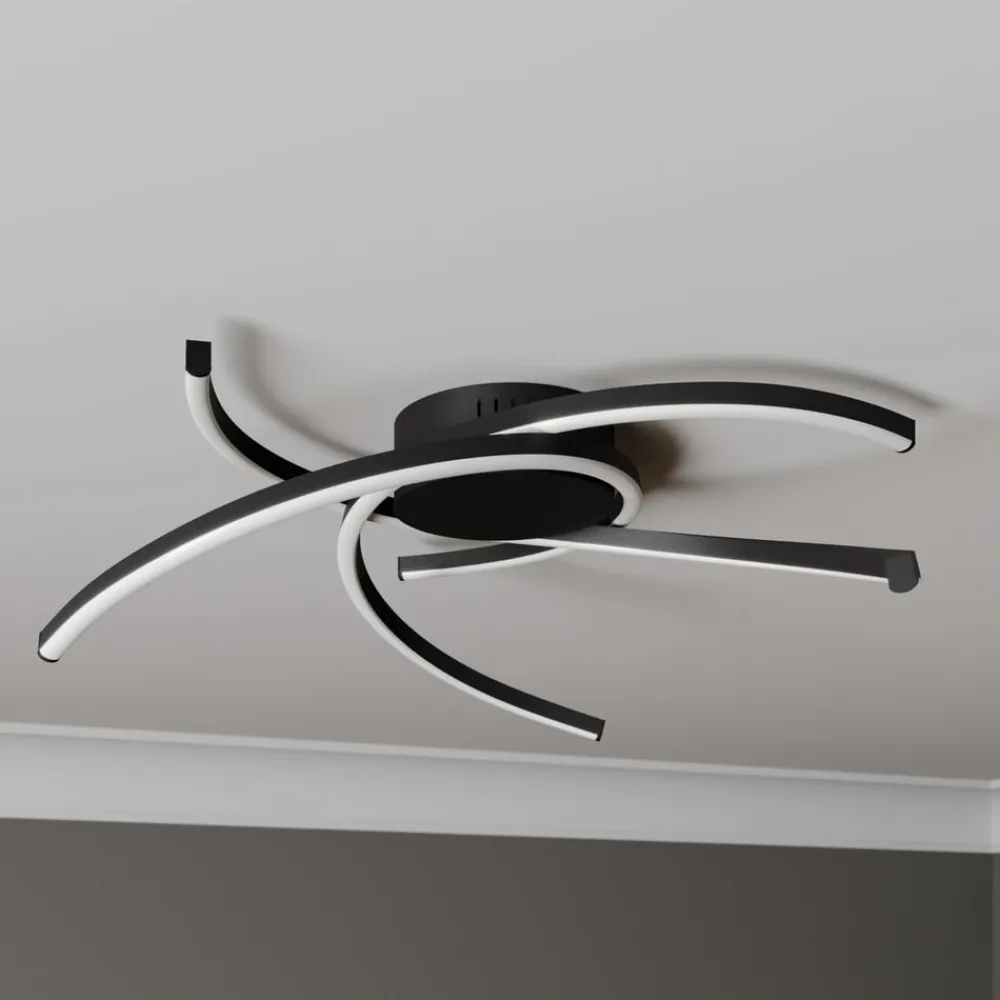 Katris genererer et klart lysskær og er en loftlampe, der frem for alt er populær i moderne rum i boligen. Overfladen på de tre bueformede belysningselementer er holdt i mat sort, og den høje lysstyrke på de effektive LED’er kan dæmpes i tre trin, når du bruger den normale vægkontakt. Lampen kan monteres i alle rum i boligen og giver et pålideligt lysskær alle vegne.