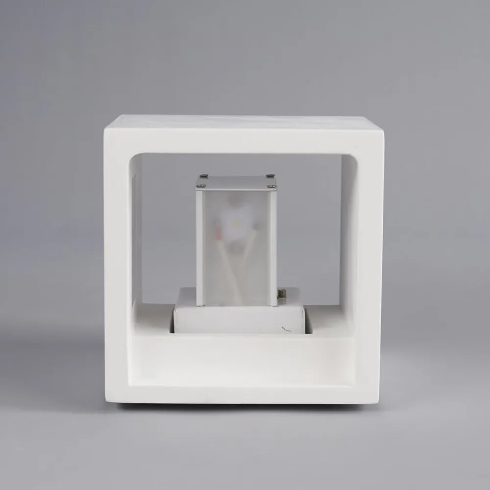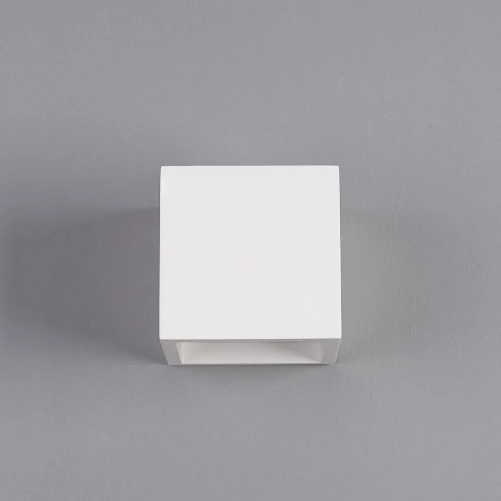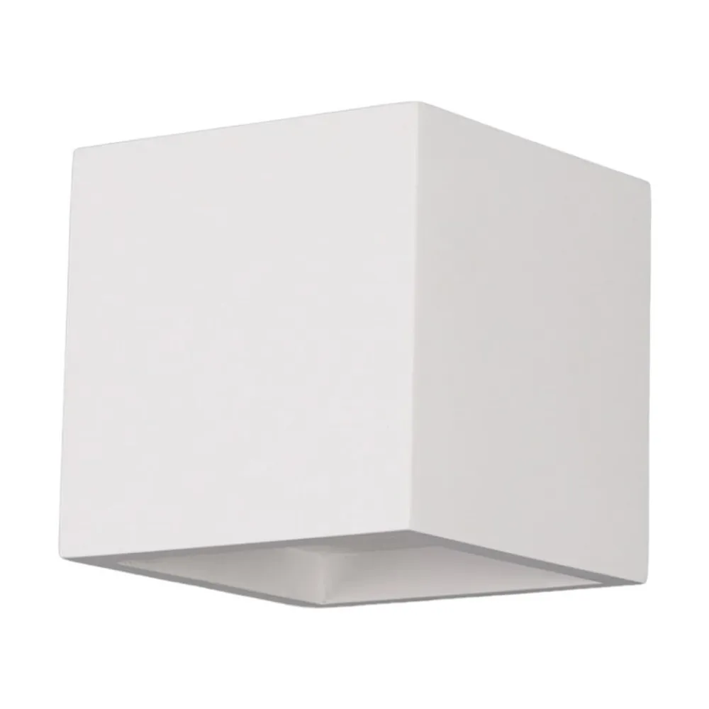 LED-væglampen Marita i et smukt gipsdesign Terningeformen passer godt til LED-væglampen Marita og gør den til en attraktiv og universel lyskilde i moderne boligområder. Men Marita kommer også til sin ret i kommercielle rum, især i restaurationsbranchen, hvor den giver et opadgående og nedadgående lys, der er varmt og indbydende. Hvid er en diskret farve, der åbner op for en bred vifte af installationsmuligheder, men måske vil nogen gerne bruge denne væglampe til at udtrykke noget særligt i stedet for det almindelige. I så fald kan den males i den ønskede farve eller males med et personligt og karakteristisk motiv. Handsker og sandpapir til dette og til den forudgående overfladebehandling er inkluderet i leveringsomfanget. På ingen tid er der skabt en lampe for individualister, som kan tilpasses den eksisterende atmosfære eller fungere som en effektiv kontrast til den.