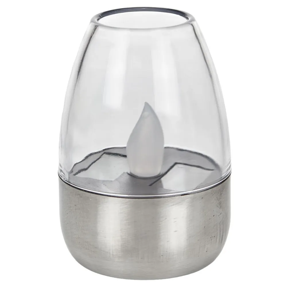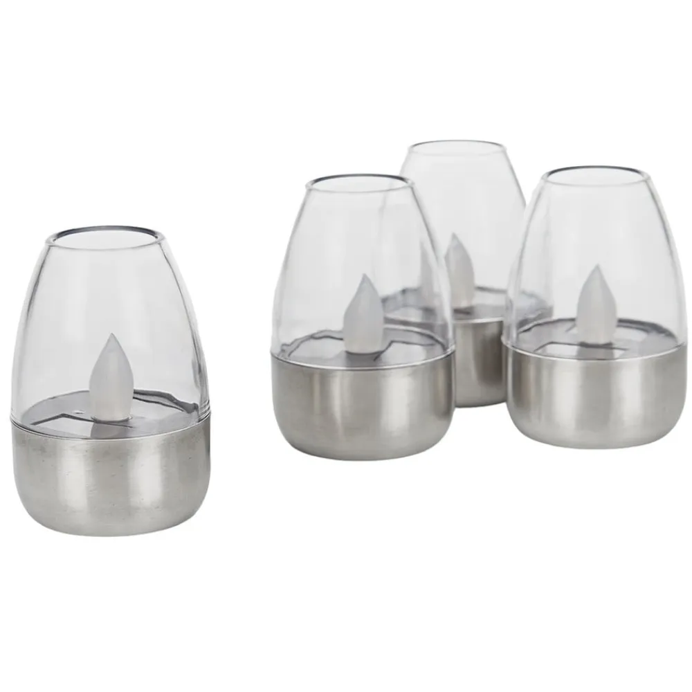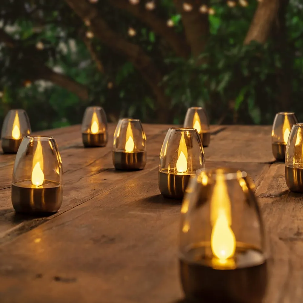 Pedas – LED-bordlampe i praktisk sæt med 10 stk. Den nederste del af Pedas LED-bordlampen er lavet af rustfrit stål, mens det øverste element er lavet af klar plast. Det ravfarvede, flimrende lys kommer til sin ret efter mørkets frembrud og giver haven, terrassen og altanen et stemningsfuldt præg. Det, der er særligt rart her, er, at bordlampen med solceller kommer i et sæt med 10 stk. Du kan skabe stilfulde lyseffekter udenfor. Så er det ligesom at tænde adskillige lanterner hver aften.