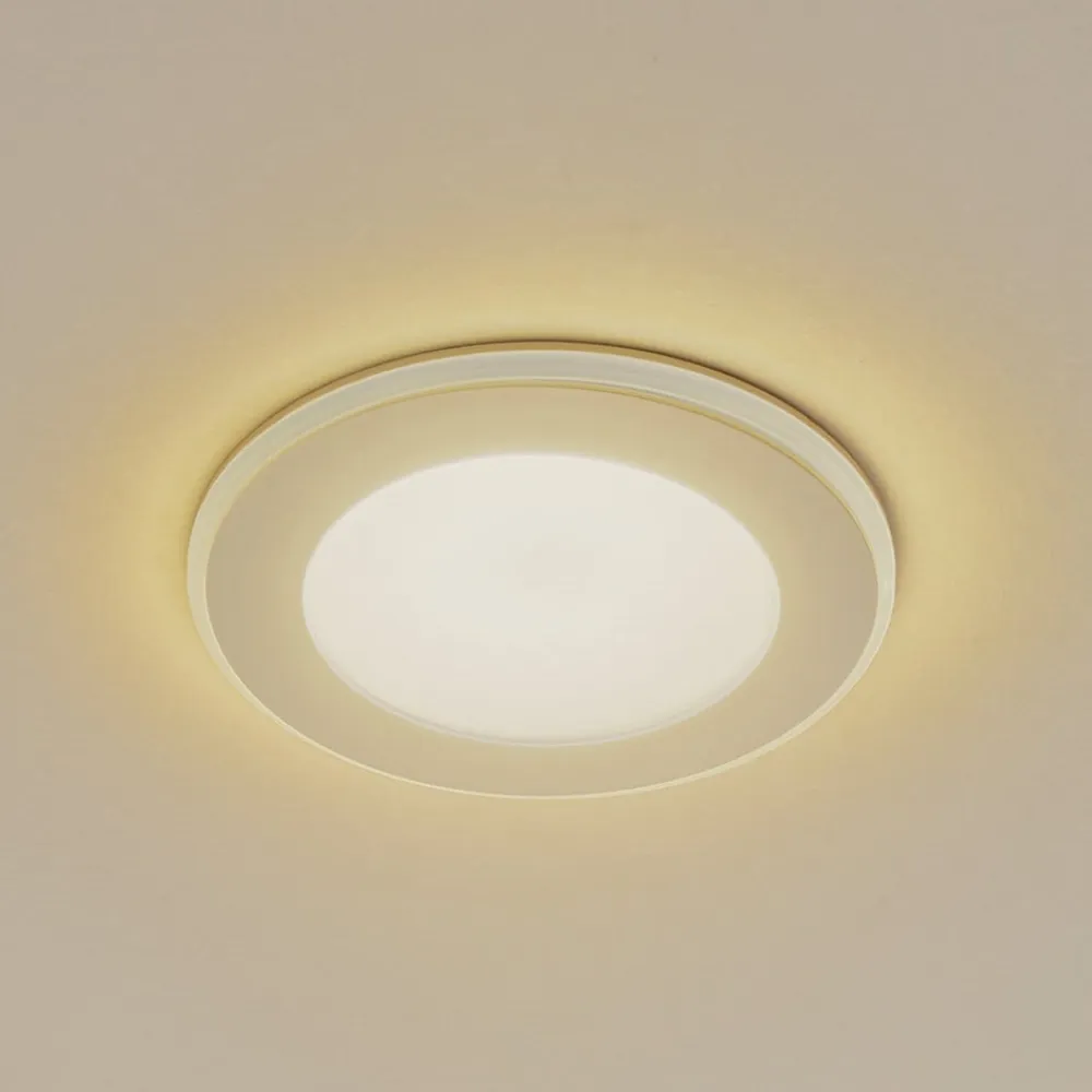 Toka indbygningslampe i hvid plast med CCT-funktion og natlampe Toka indbygningslampe kombinerer moderne design med innovativ styrbar lysfarve (CCT), som gør det muligt at justere lysfarven efter den ønskede atmosfære ved hjælp af en vægkontakt. Som en permanent integreret LED-lyskilde tilbyder Toka en energieffektiv belysningsløsning, der er ideel til brug i spisestuer, stuer eller gangarealer. Den enkle elegance i hvid passer problemfrit ind i ethvert moderne interiør og understreger rummets stilfulde orientering. Indbygningslampen kan kombineres med fasedæmpere til forkant eller bagkant for at sikre fleksibel belysning. Den har også en natlampe, som giver passende belysning i aftentimerne.