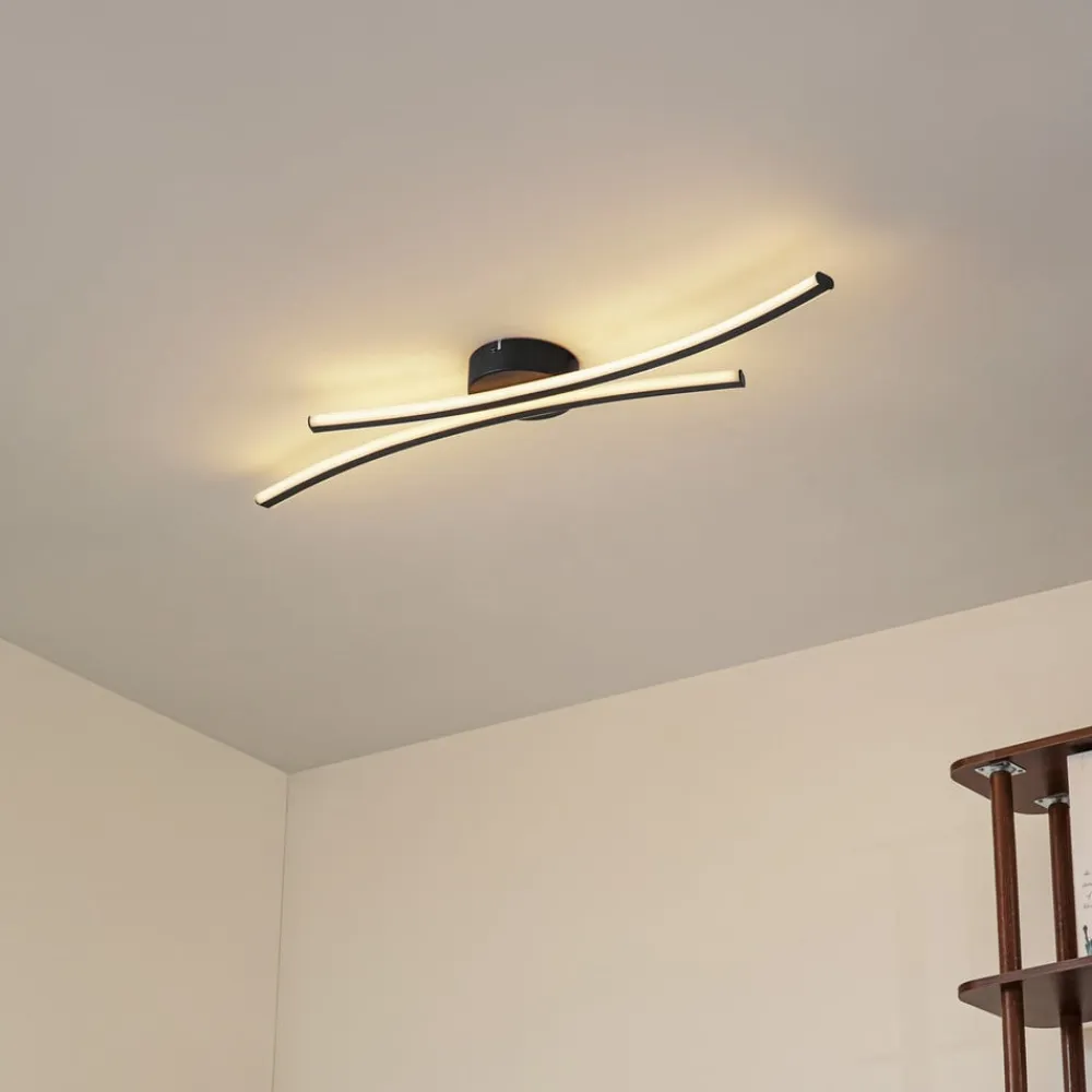 LED-loftlampen Ravion forener stilfuld æstetik med funktionel belysning. Lampen er fremstillet af aluminium og PVC og præsenterer sig i en elegant sort farve, der passer perfekt ind i moderne boliger. Med sin varmhvide lysfarve på 3.000 Kelvin skaber den en indbydende atmosfære, der er ideel til stuen. Den integrerede LED-lyskilde sikrer en jævn belysning og understreger designets klare linjer.