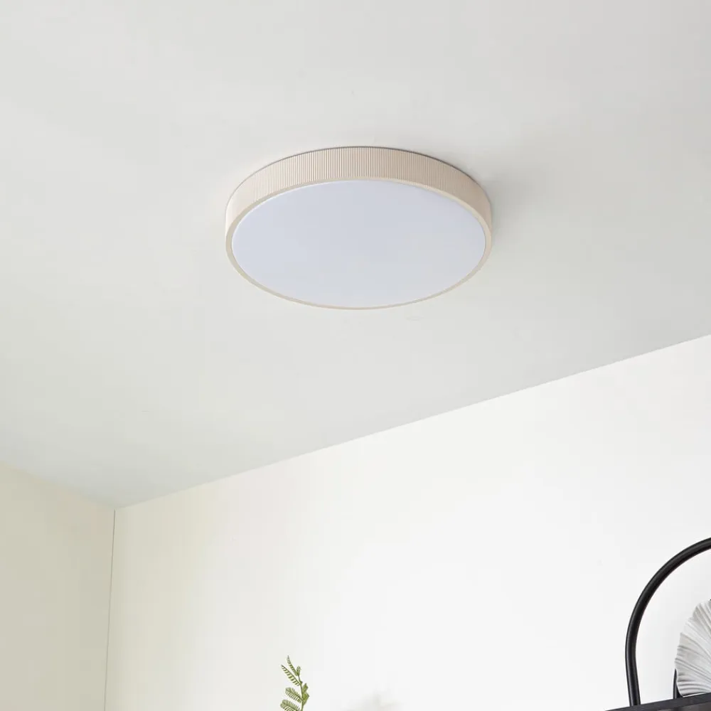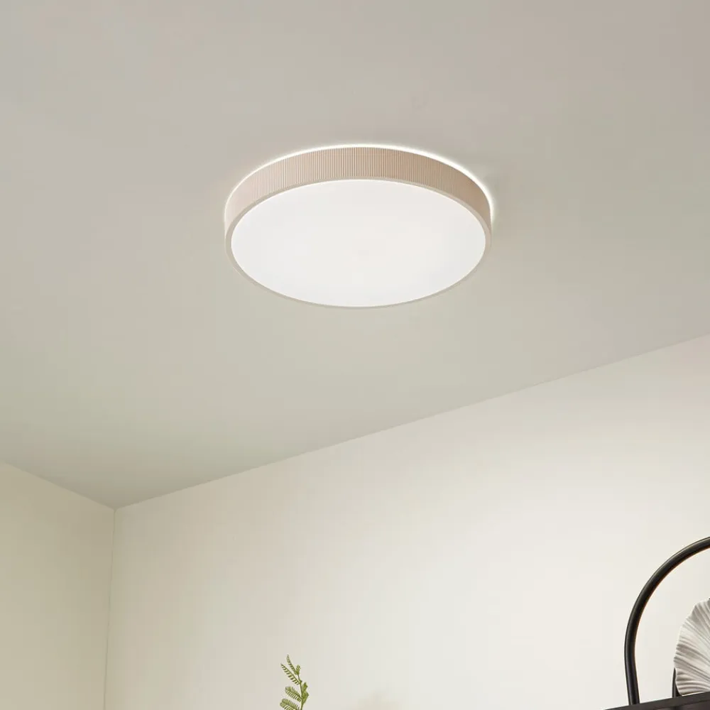 Lindby LED-loftlampen Zylo i beige og hvid forener funktionalitet og design i et moderne belysningselement. Den er fremstillet af højkvalitetsplast og er en holdbar og stilfuld løsning til forskellige boligområder. Den integrerede LED-lyskilde sikrer energibesparende lys og kan nemt dæmpes i tre trin via vægkontakten.