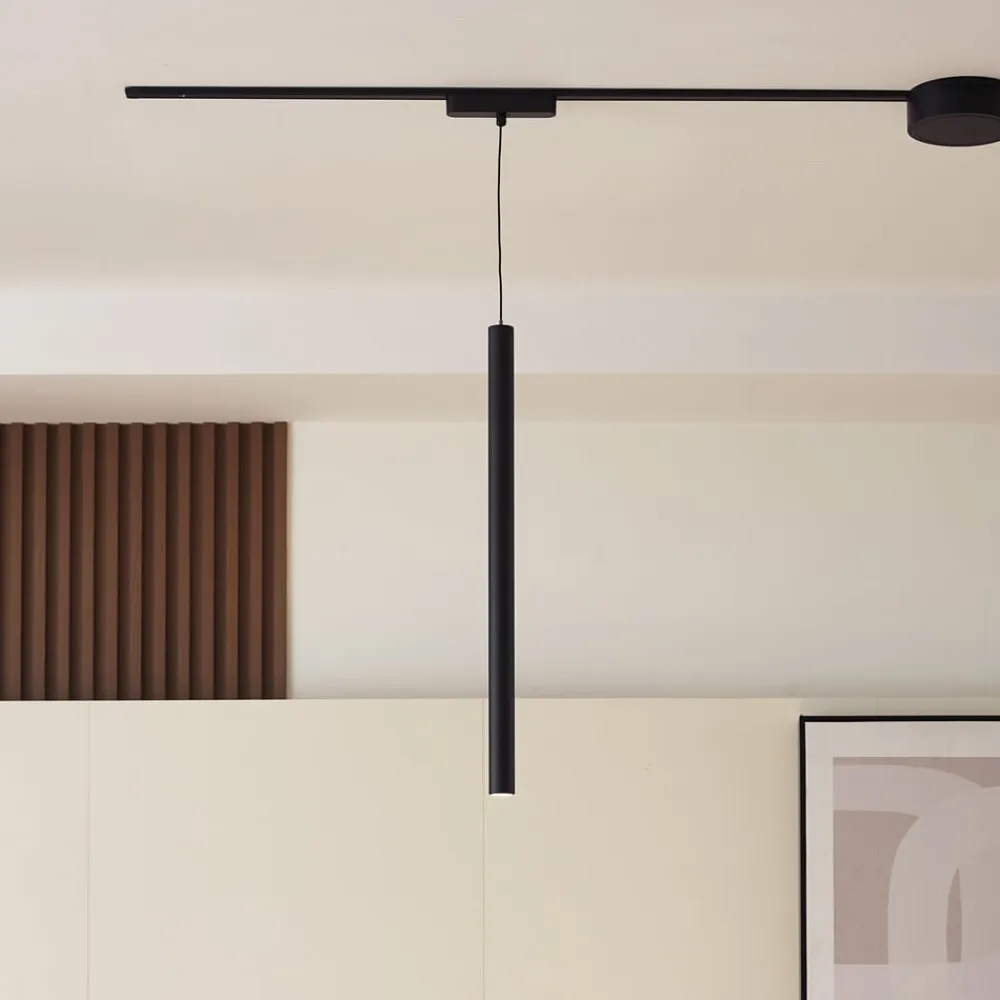 Sort Lumaro LED-pendellampe: elegance møder funktionalitet Lumaro LED-pendellampen er et godt eksempel på sammensmeltningen af elegance og funktionalitet i ét belysningselement. Med sin enkle sorte farve passer den problemfrit ind i moderne opholds- og spisestuer. Den integrerede LED-lyskilde giver ikke kun energibesparende lys, men også en kontrollerbar lysfarve (CCT) og en dæmpningsfunktion, der gør det muligt at justere lysfarven og lysstyrken efter behov – fra varme toner til en hyggelig atmosfære til køligere nuancer, der fremmer koncentrationen. Begge funktioner styres ved hjælp af en fjernbetjening, som ikke medfølger, men kan købes separat via tilbehøret. Lumaro LED-skinnesystemet kan integreres i skinnesystemet af samme navn og giver mulighed for ukompliceret og enkel installation. Det giver også utallige designmuligheder med ekstra skinne- og belysningselementer, der giver maksimal fleksibilitet og kan udvides på et senere tidspunkt – skal kombineres med 48V Lumaro LED-driveren for at fungere Bemærk, at Lumaro skinnesystemet kun er kompatibelt med tilbehør fra Lumaro-sortimentet. For at undgå forveksling med andre systemer må du kun kombinere tilbehør og skinnesystemer fra serien med samme navn.