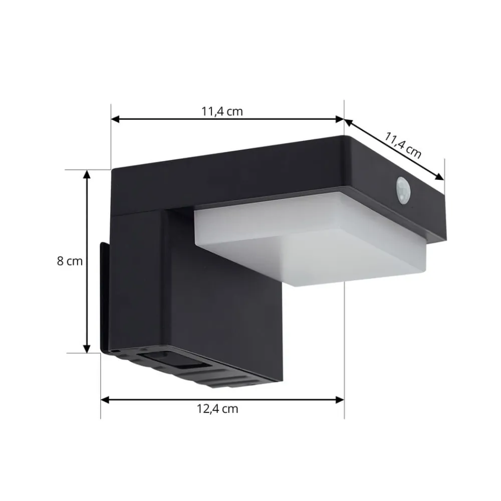 Sort LED-væglampe Eleazar med praktisk bevægelsessensor og lysdæmperfunktion Denne moderne belysningsløsning kombinerer stilfuld elegance med energieffektiv LED-teknologi for at forvandle altaner og terrasser til inspirerende tilflugtssteder. Den integrerede LED-lyskilde skaber en behagelig atmosfære og er nem at regulere takket være den medfølgende dæmper. Solcellefunktionen i denne væglampe muliggør en selvforsynende energiforsyning, der er både praktisk og bæredygtig – inkl. 3,7 2600mAh Li-ion-batteri – inkl. monokrystallinsk solpanel – registreringsvinkel bevægelsessensor 120° – registreringsområde bevægelsessensor 3-7m – lysdæmper (100%, 10%)