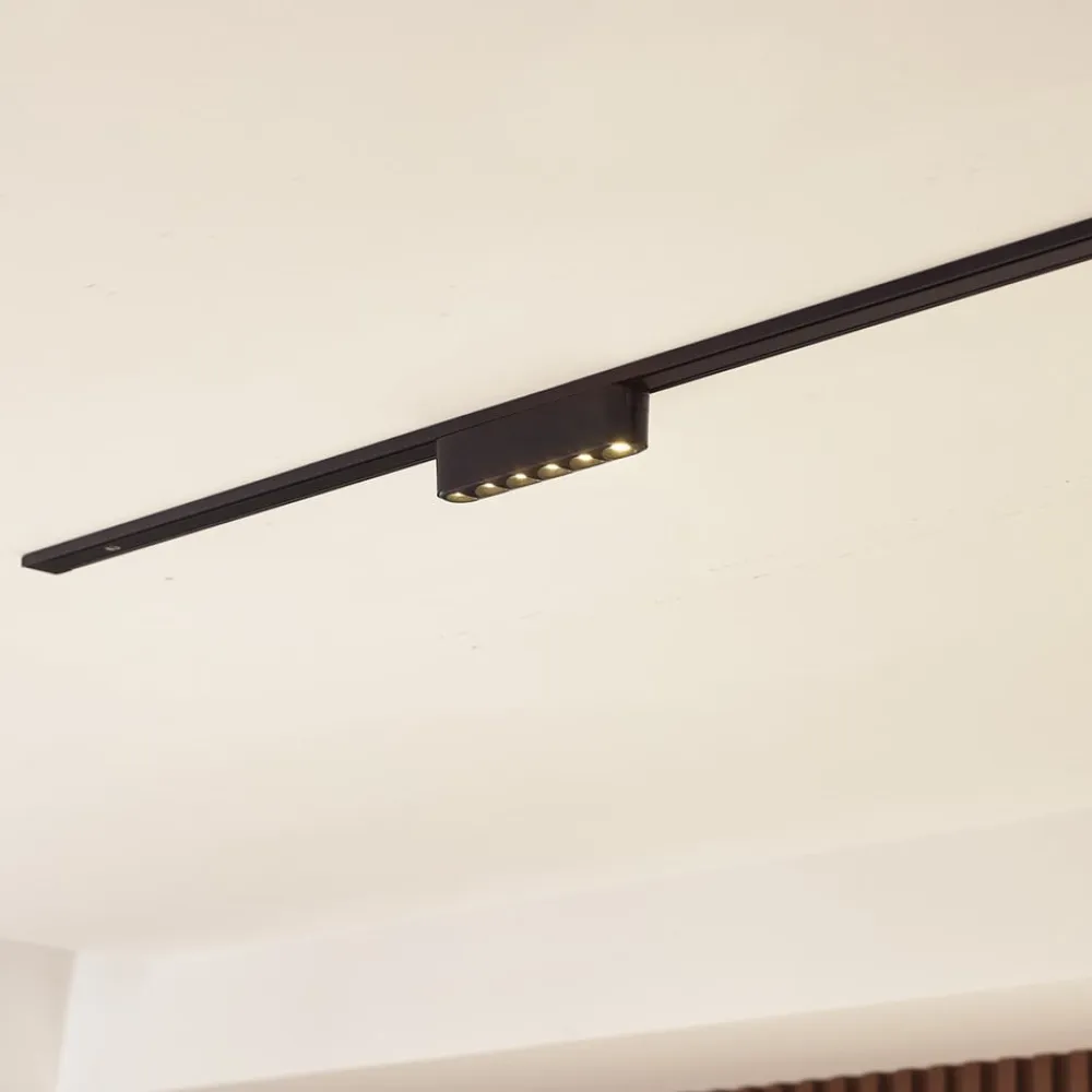 6 lyskilder til Lumaro-serien – moderne belysning til indendørs områder Lumaro LED-skinnelampen er en elegant belysningsløsning, der kombinerer moderne æstetik med funktionel fleksibilitet. Lumaros integrerede LED-lyskilde sikrer energieffektiv belysning, der ikke kun sparer på elregningen, men også imponerer med sin lange levetid. Den styrbare lysfarve (CCT) gør det muligt at justere lysfarven efter behov, så der kan skabes forskellige stemninger og atmosfærer – fra varme toner til en hyggelig aftenstemning til køligere nuancer til koncentreret arbejde. Den kan også dæmpes til fire niveauer (10 %, 20 %, 50 % og 75 %). Både dæmpningsfunktionen og CCT-funktionen styres ved hjælp af en fjernbetjening, som ikke medfølger, men kan købes separat som tilbehør. Lumaro LED-skinnesystemet kan integreres i skinnesystemet af samme navn og giver mulighed for ukompliceret og enkel installation. Det giver også utallige designmuligheder med ekstra skinne- og belysningselementer, der giver maksimal fleksibilitet og kan udvides på et senere tidspunkt – skal kombineres med 48V Lumaro LED-driveren for at fungere Bemærk, at Lumaro skinnesystemet kun er kompatibelt med tilbehør fra Lumaro-sortimentet. For at undgå forveksling med andre systemer må du kun kombinere tilbehør og skinnesystemer fra serien med samme navn.