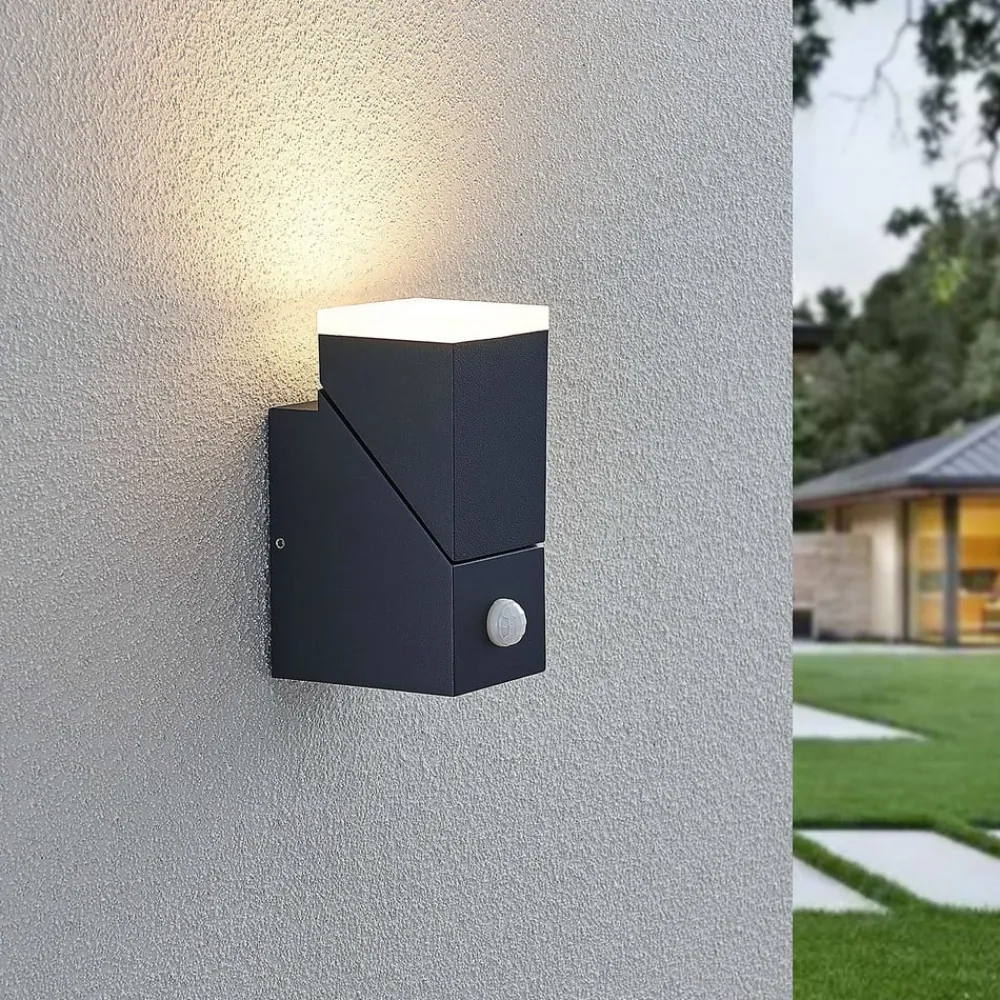 Lindby LED-væglampe Sally, 15 cm, antracit, IP54, sensor