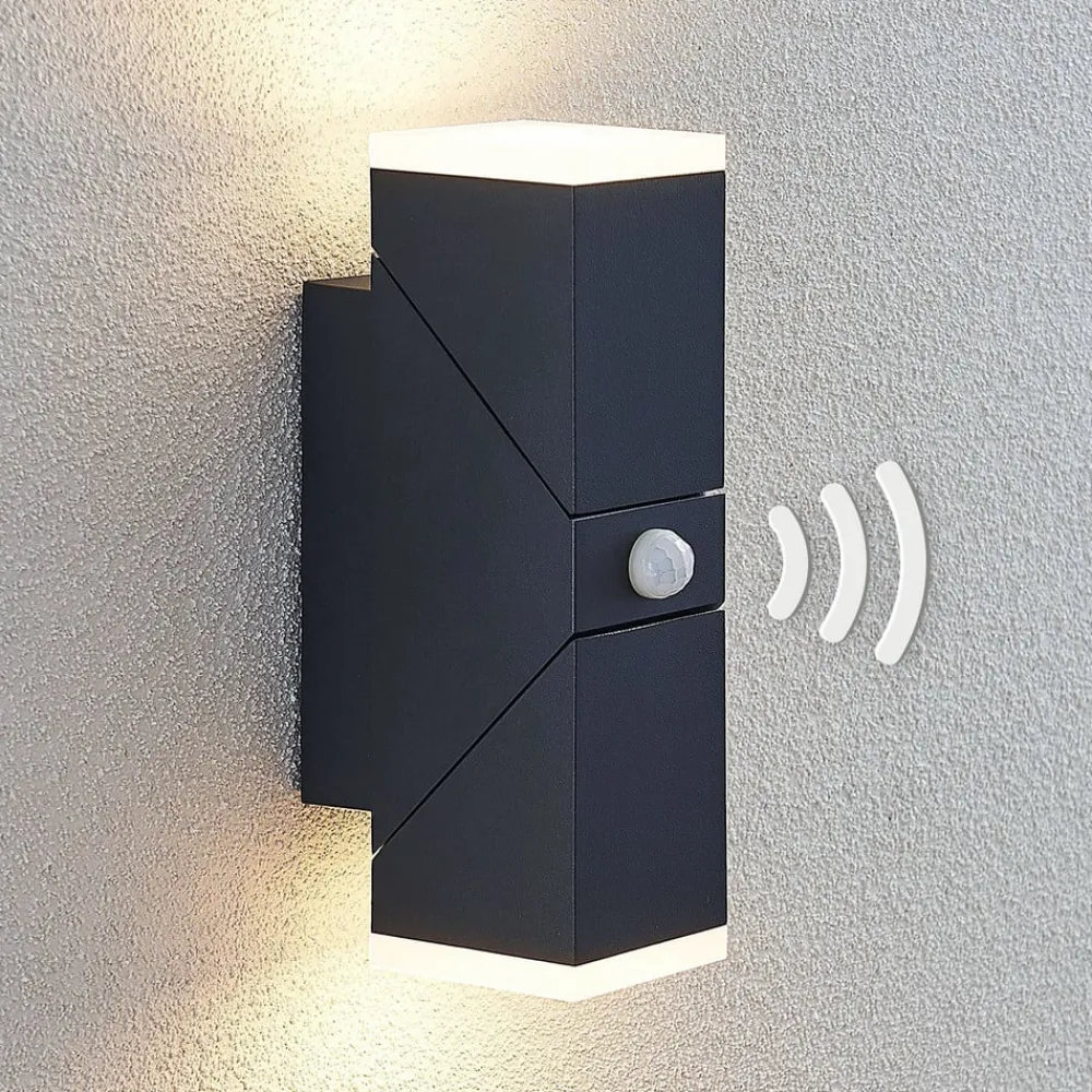 Lindby LED-væglampe Sally, 22 cm, antracit, IP54, sensor