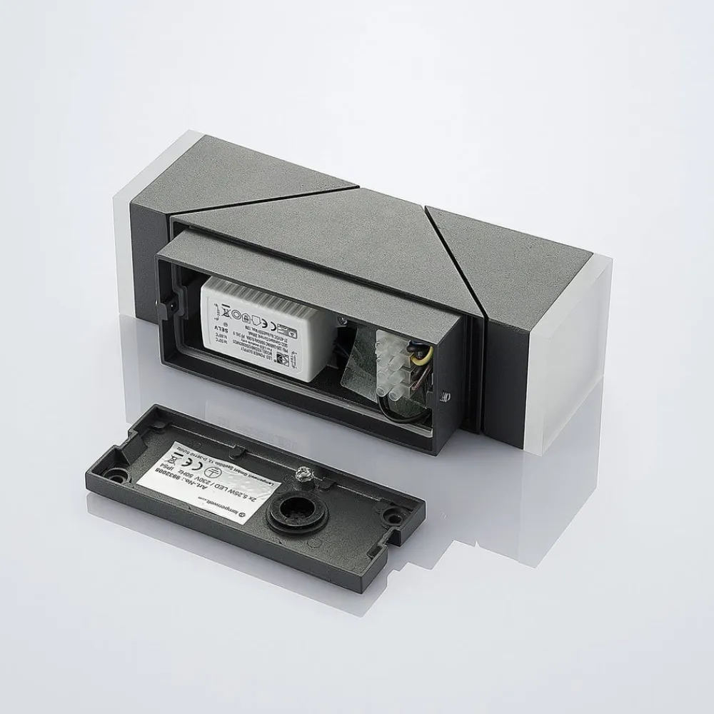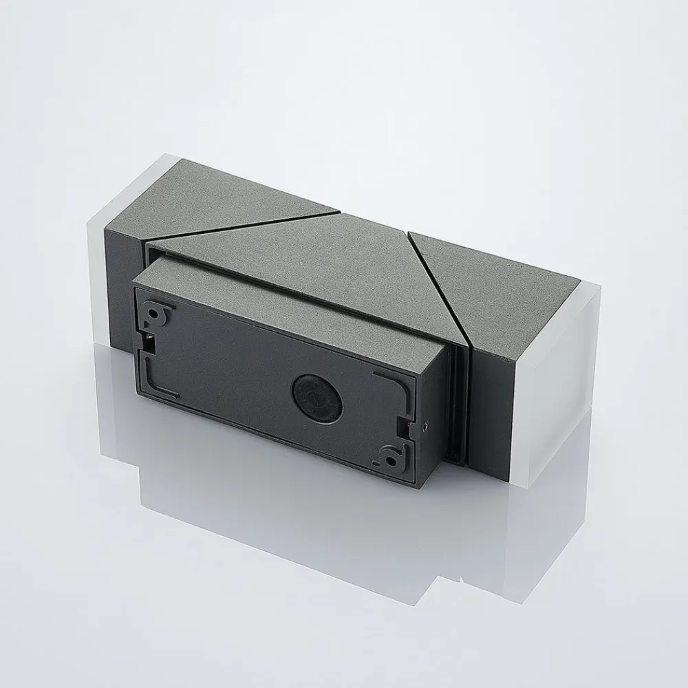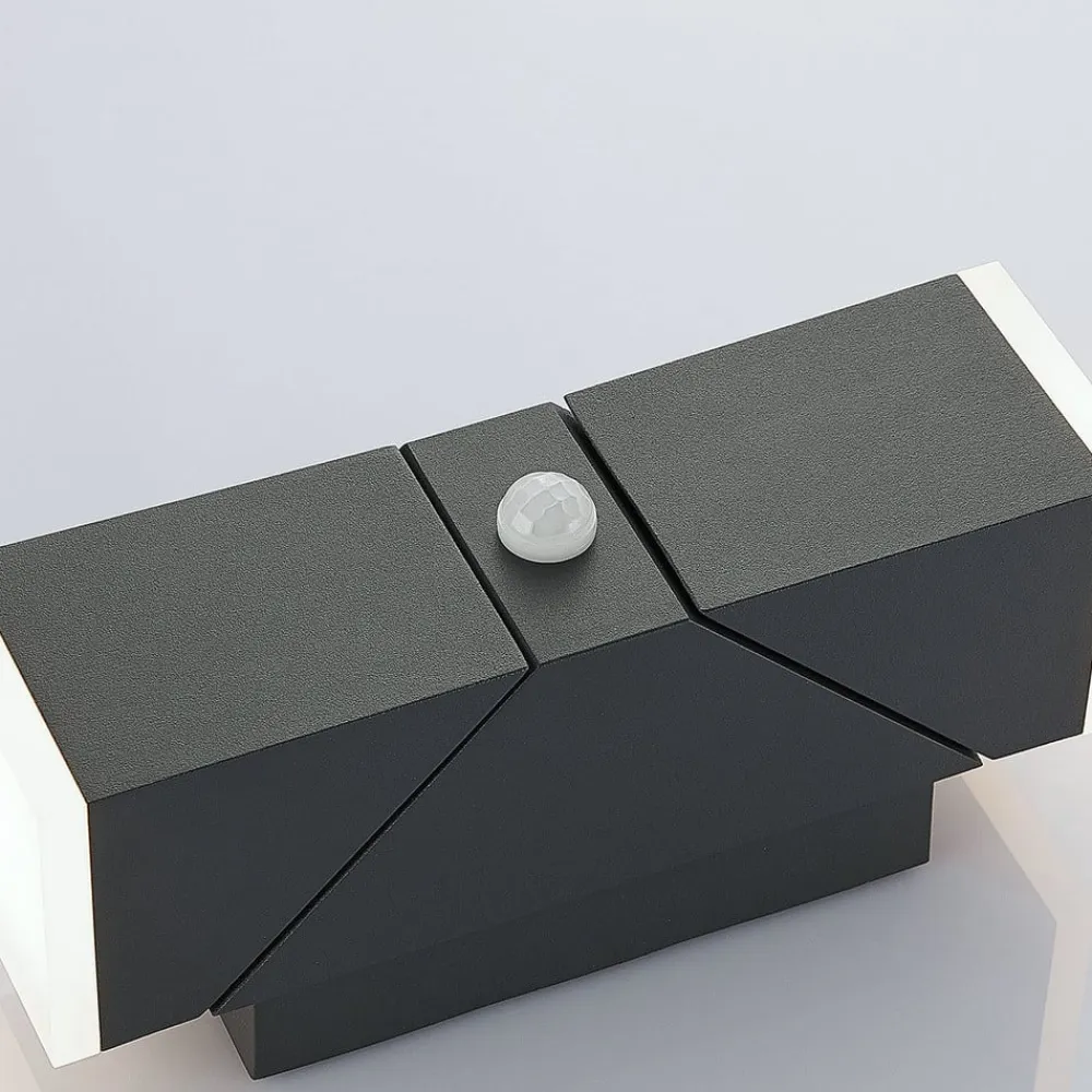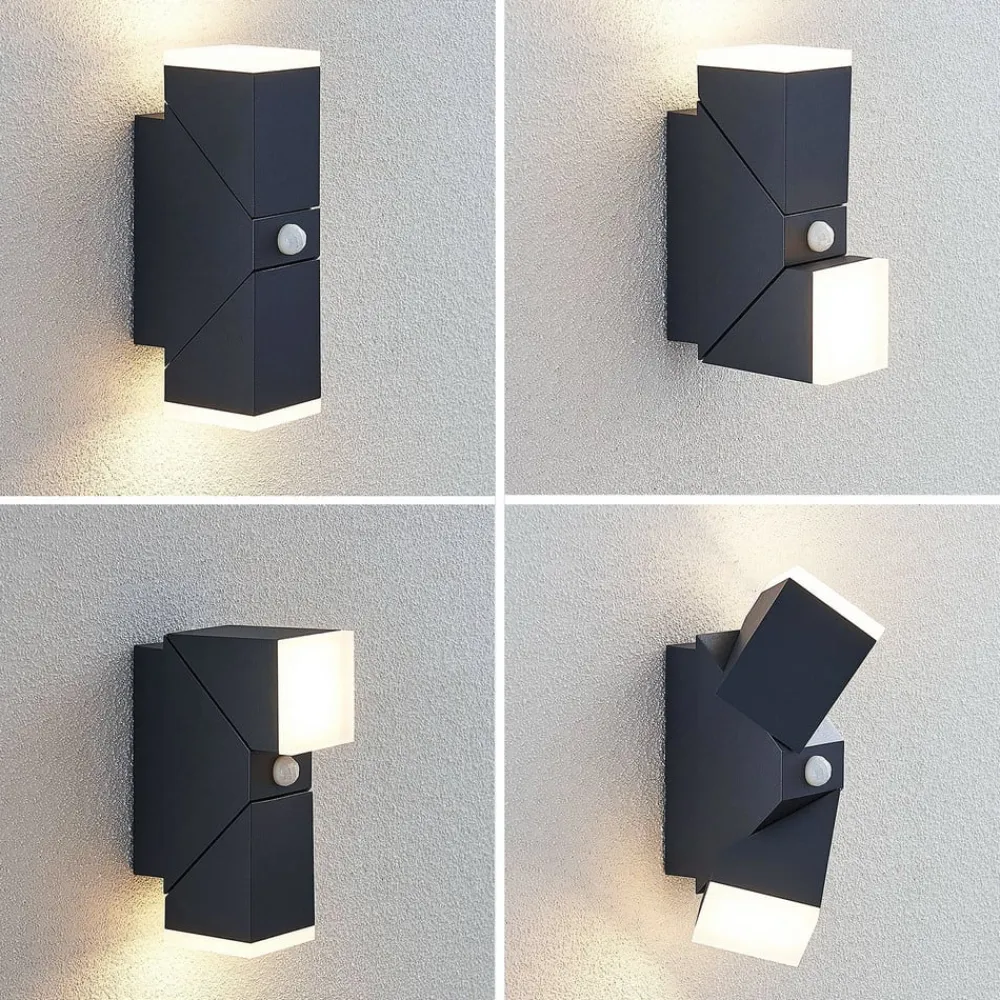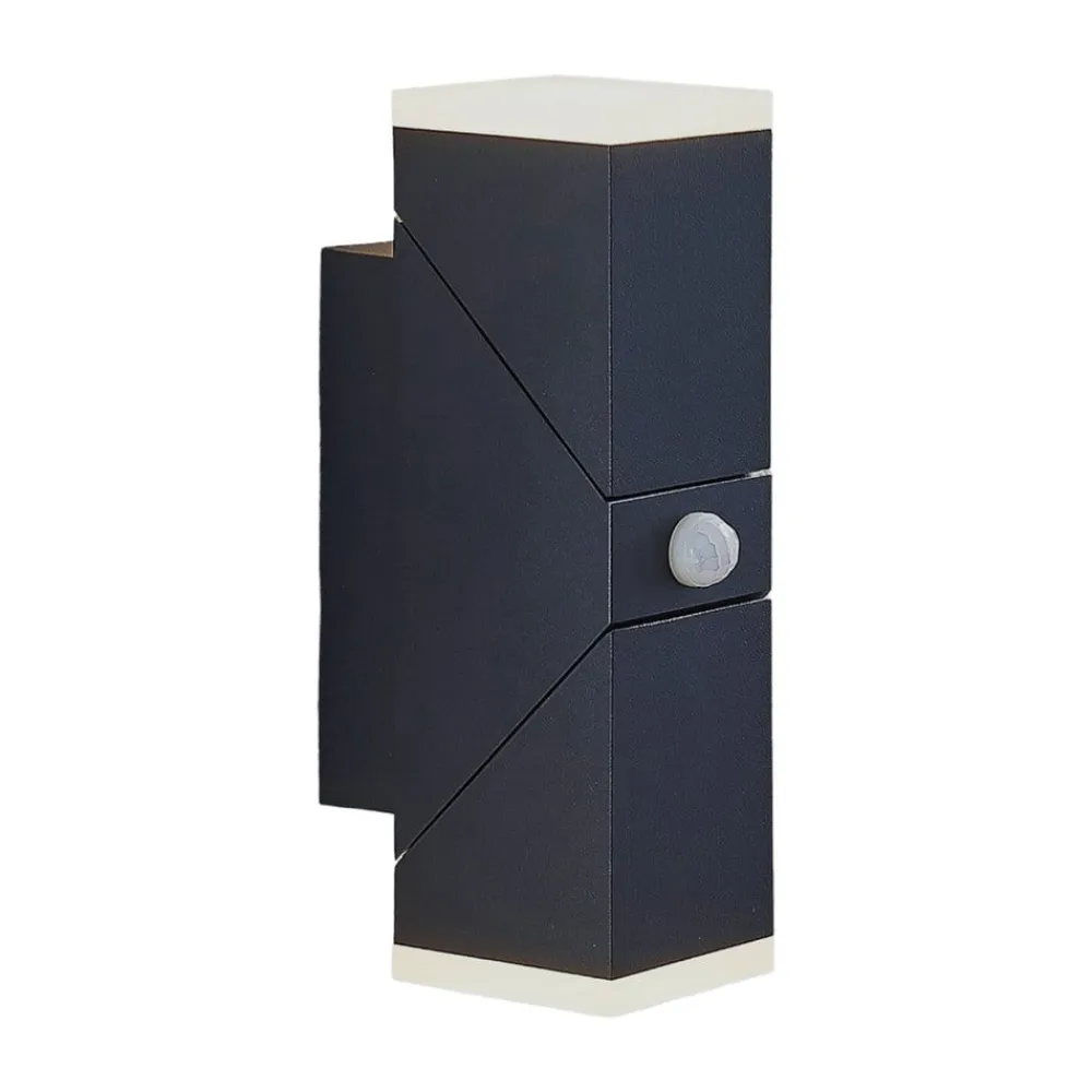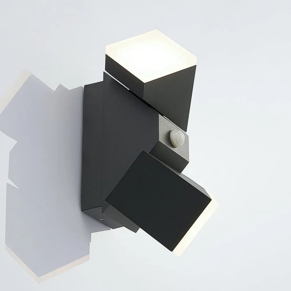 Mørkegrå Sally LED udendørs-væglampe med integreret sensor og to justerbare lyselementer Sally LED udendørs-væglampen har et moderne udseende og et lineært design. Med en kapslingsgrad på IP54 er den ideel til udendørs brug. De to lyselementer kan flyttes fleksibelt for at tilpasse lysstrålen til individuelle behov. En bevægelsessensor er placeret i midten af lampekroppen, så Sally kan tændes med det samme, hvis det er nødvendigt. Data for bevægelsessensor: – Registreringsvinkel 100° – Rækkevidde 4-6 m – Lysets varighed kan justeres fra 5 s – 6 min – Installationshøjde 2-2,5 m