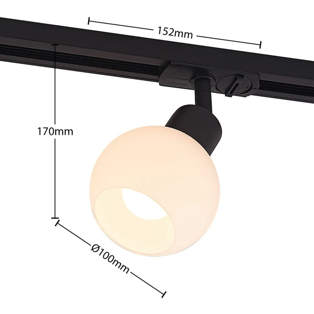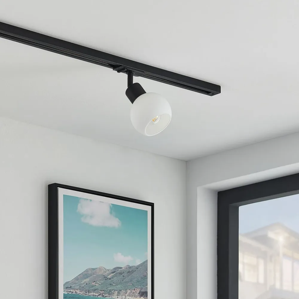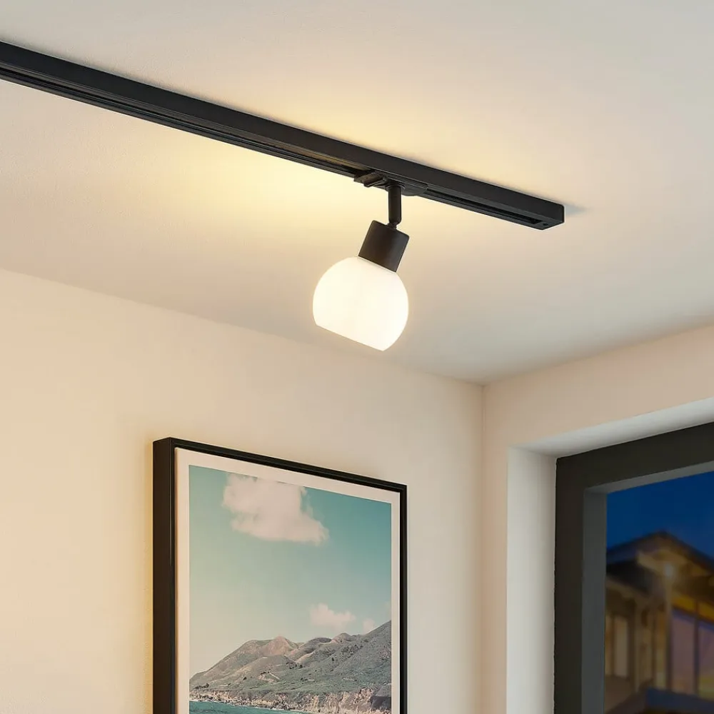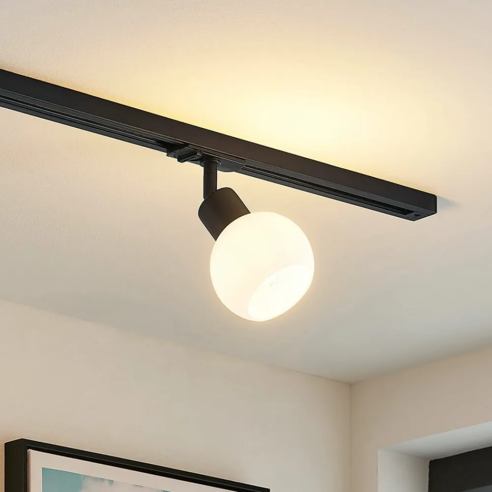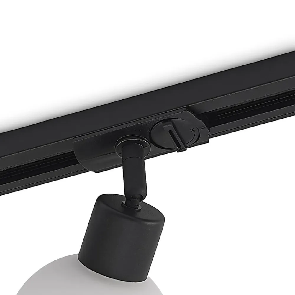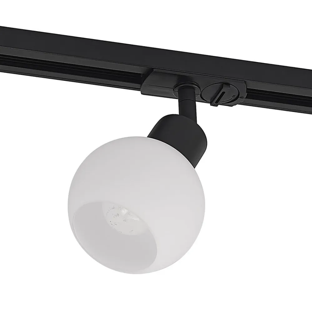 Sort Linaro skinnespot med glasskærm, velegnet til enkeltkredsløb Den lille Linaro spot er velegnet til enkeltkredsløbsskinnesystemer og giver et godt, præcist lys. Takket være et lille led kan spottet justeres individuelt. Spottet kan monteres med en pære af typen E14.