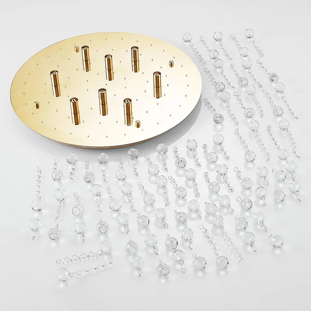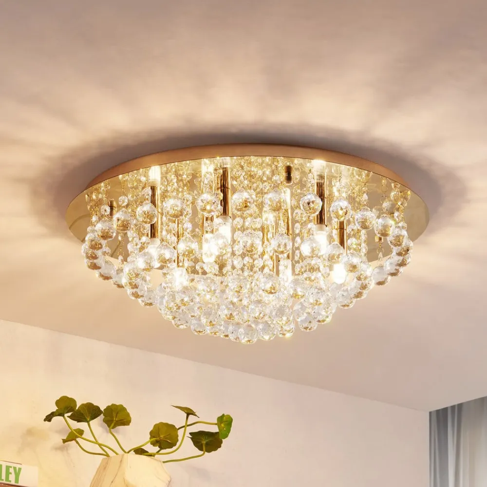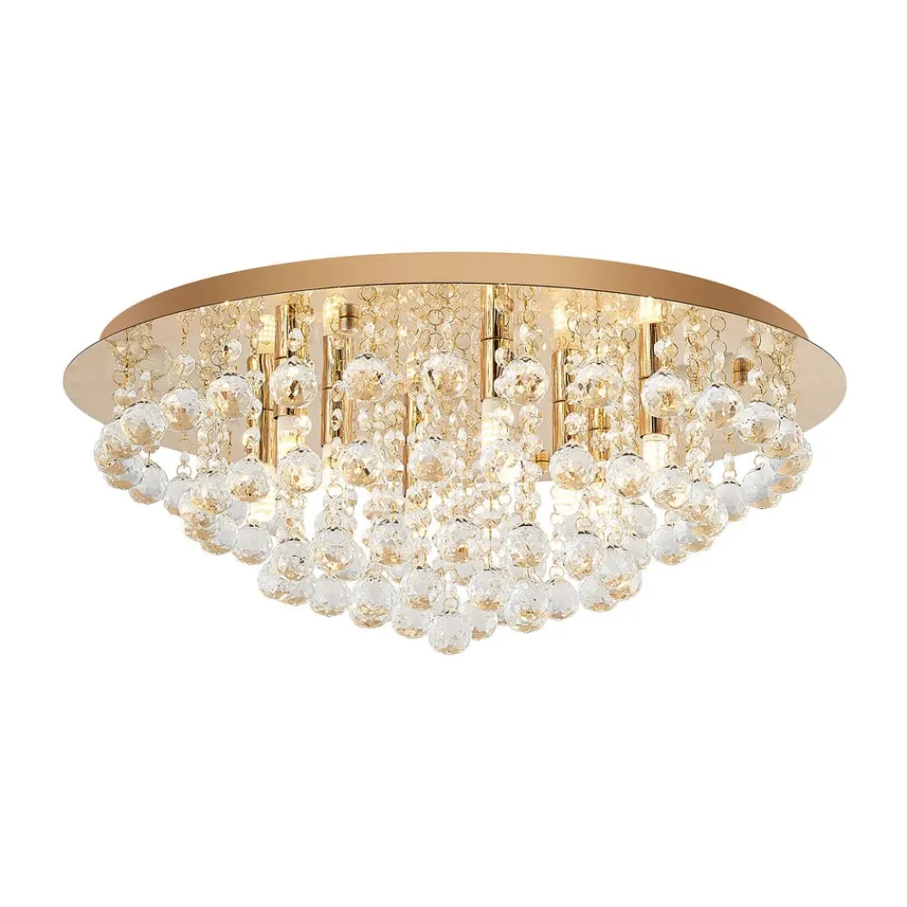 Lindby loftlampe Gillion, 8 lyskilder, guld, krystal, Ø 55cm