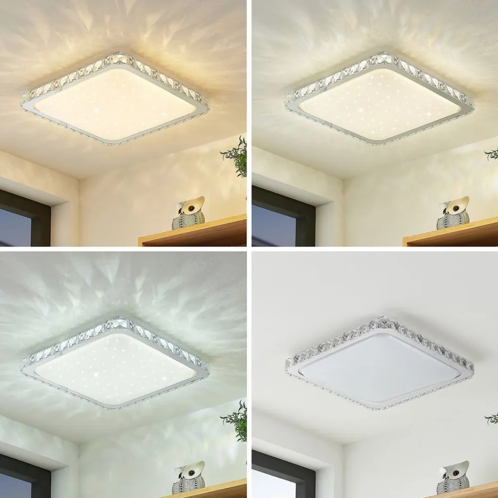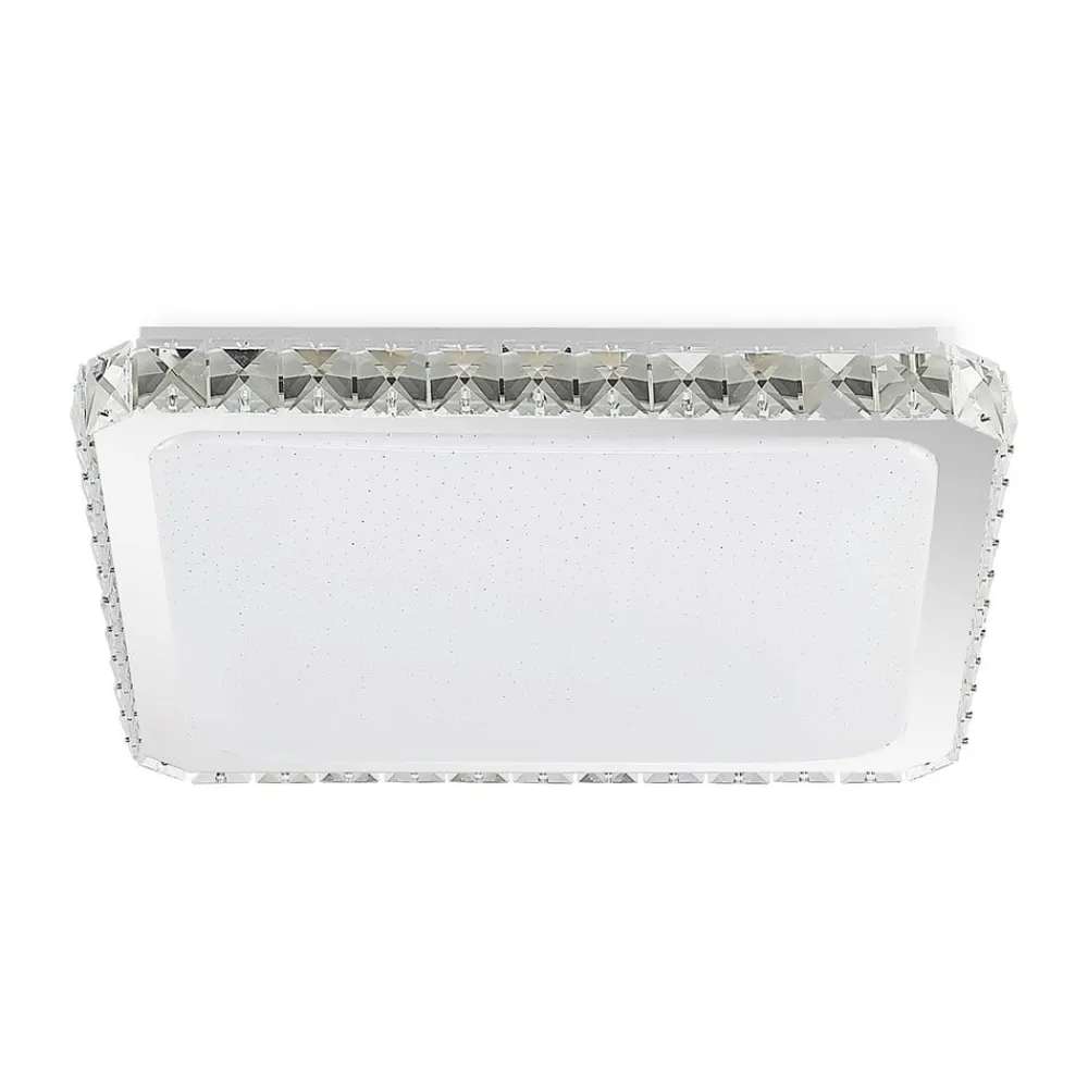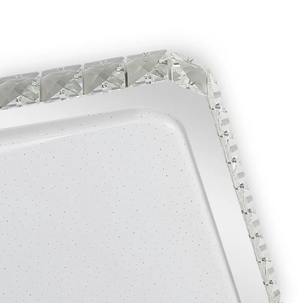 Stilfuld LED-loftlampe Lorand overbeviser med sit moderne design og sine praktiske funktioner. Den har en firkantet form og er fremstillet af stål og plast. Den ydre ramme er dekoreret med krystalperler, der giver den et skinnende udseende. Lysets farve kan styres via en fjernbetjening (3.000 K, 4.000 K og 6.000 K). Således kan den til enhver tid sørge for det rigtige lys og skabe den passende stemning. Det ellers ret diskrete design af LED-loftlampe Lorand passer godt ind i moderne indretningsstilarter og harmonerer godt med det øvrige møblement. Den rolige farve i hvid og krom giver den desuden et elegant udseende, som sætter diskrete accenter på loftets overflade.