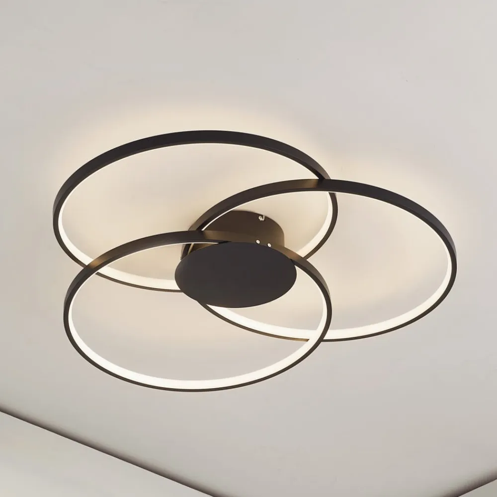 Lindby Loftlamper>LED-loftlampe Elviano, Ø 80 cm, sort, 3.000 K