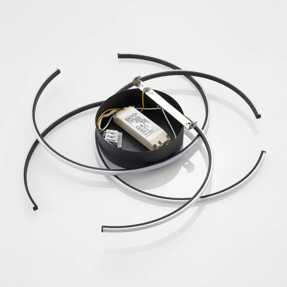LED-loftlampen Hamza har et usædvanligt udseende. Lampekroppen består af tre lyscirkler, der krydser hinanden i midten og har en åbning i yderkanten. Den fastmonterede LED løber i form af cirkler og skaber et interessant lysspil på loftet, som sikrer en attraktiv atmosfære. LED-loftlampen Hamza er således ikke kun et interessant dekorationselement, men også en pålidelig lyskilde. Hendes spændende udseende passer perfekt ind i stuen eller soveværelset og giver rummet dekorative og tiltalende accenter.