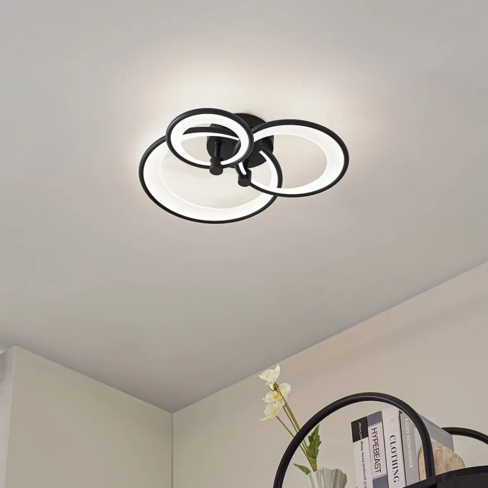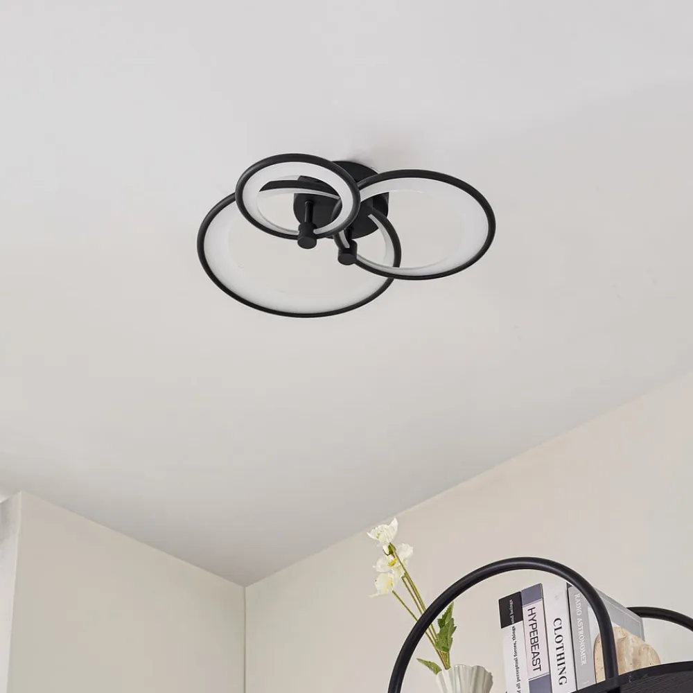 Dæmpbar LED-loftslampe Sorma med CCT-funktion Den stilfulde kombination af sort og hvid finish giver lampen en elegant æstetik, der tilfører ethvert rum et særligt præg.