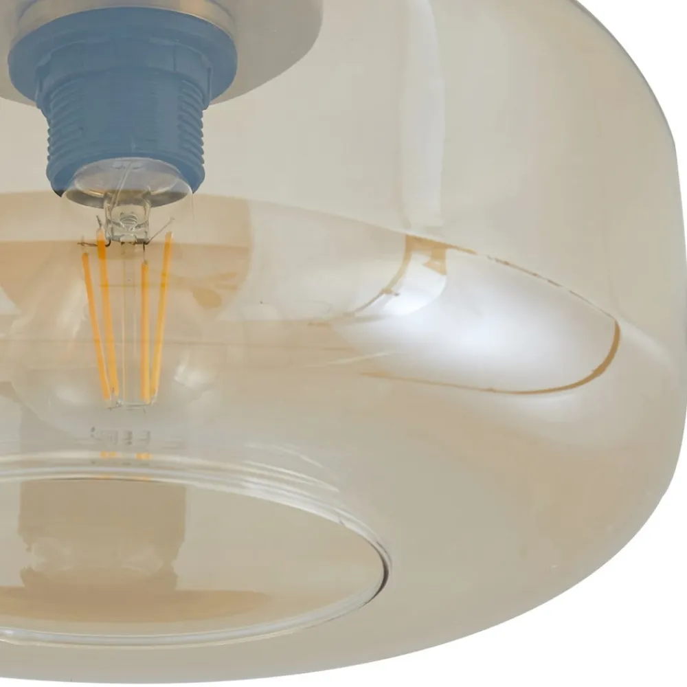 Oplev, hvordan loftlampen Hildur med det elegante glas i ravfarve kombineret med en baldakin i messing skaber en atmosfære af modernitet og vintage charme. Denne lampe er en stilfuld tilføjelse til forskellige rum såsom spisestuen, stuen eller entreen. Selvom der ikke medfølger en lysdæmper, kan lysstyrken tilpasses individuelt med en ekstern lysdæmper for at skabe den ønskede stemning (bemærk, at den eksterne lysdæmper skal købes separat). Med sit tiltalende design og harmoniske farver sætter loftlampen Hildur et fascinerende præg i ethvert rum.