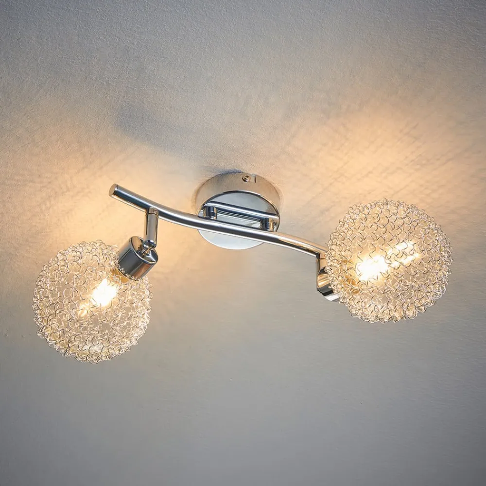 Kompakt Ticino loftslampe med 2 kugler af metalnet