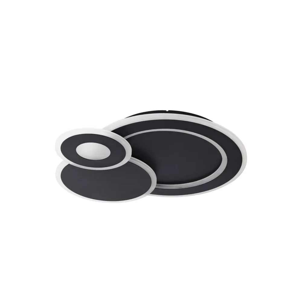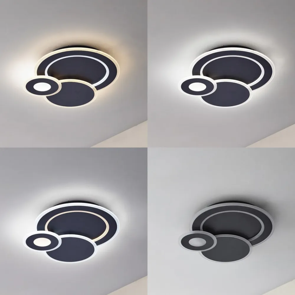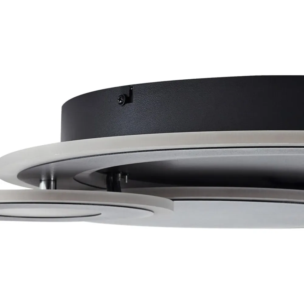 Briar LED-loftlampe: alsidig belysningskontrol til moderne boligområder Briar LED-loftlampen kombinerer moderne design med funktionel alsidighed. Lampen er fremstillet af plast og jern og passer perfekt ind i moderne boligmiljøer. Den elegante kombination af sort og transparent finish giver et stilfuldt touch til ethvert rum. Lampen har en kontrollerbar lysfarve (CCT), som kan bruges til at indstille lysfarven mellem varmhvid (2.700 K) og dagslys (6.500 K). En dæmpningsfunktion er også integreret (10 %, 20 %, 50 % og 75 %). Begge funktioner styres med den medfølgende fjernbetjening. CCT-funktionen kan også styres med en almindelig vægkontakt.