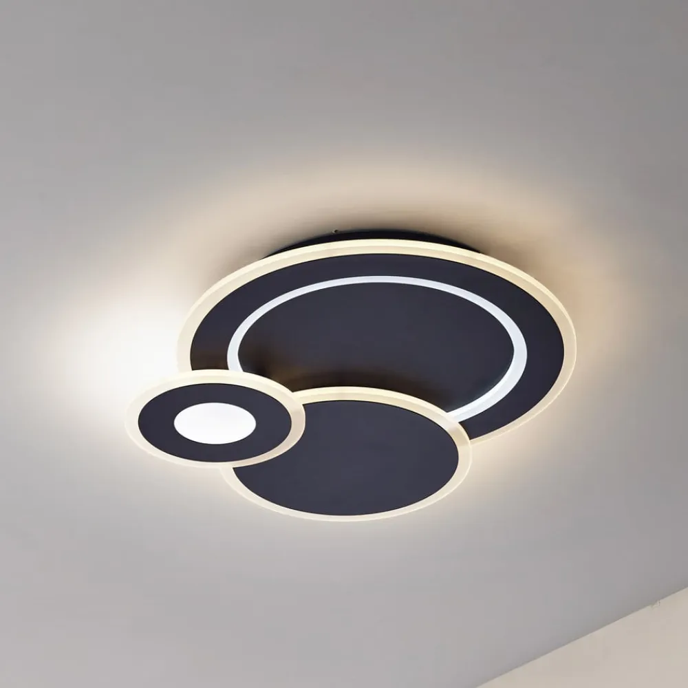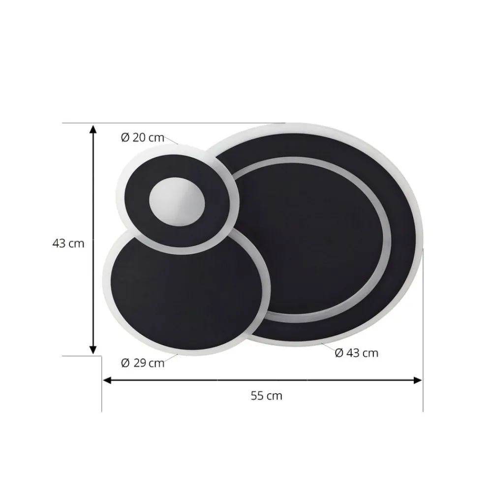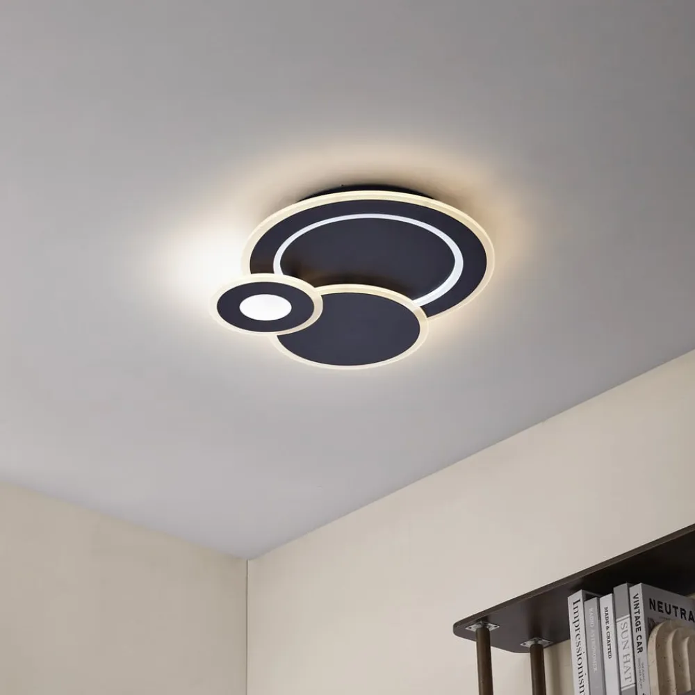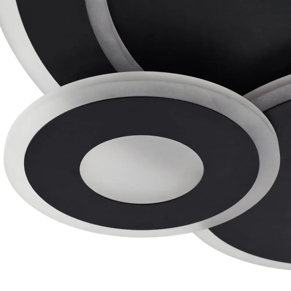 Briar LED-loftlampe: alsidig belysningskontrol til moderne boligområder Briar LED-loftlampen kombinerer moderne design med funktionel alsidighed. Lampen er fremstillet af plast og jern og passer perfekt ind i moderne boligmiljøer. Den elegante kombination af sort og transparent finish giver et stilfuldt touch til ethvert rum. Lampen har en kontrollerbar lysfarve (CCT), som kan bruges til at indstille lysfarven mellem varmhvid (2.700 K) og dagslys (6.500 K). En dæmpningsfunktion er også integreret (10 %, 20 %, 50 % og 75 %). Begge funktioner styres med den medfølgende fjernbetjening. CCT-funktionen kan også styres med en almindelig vægkontakt.
