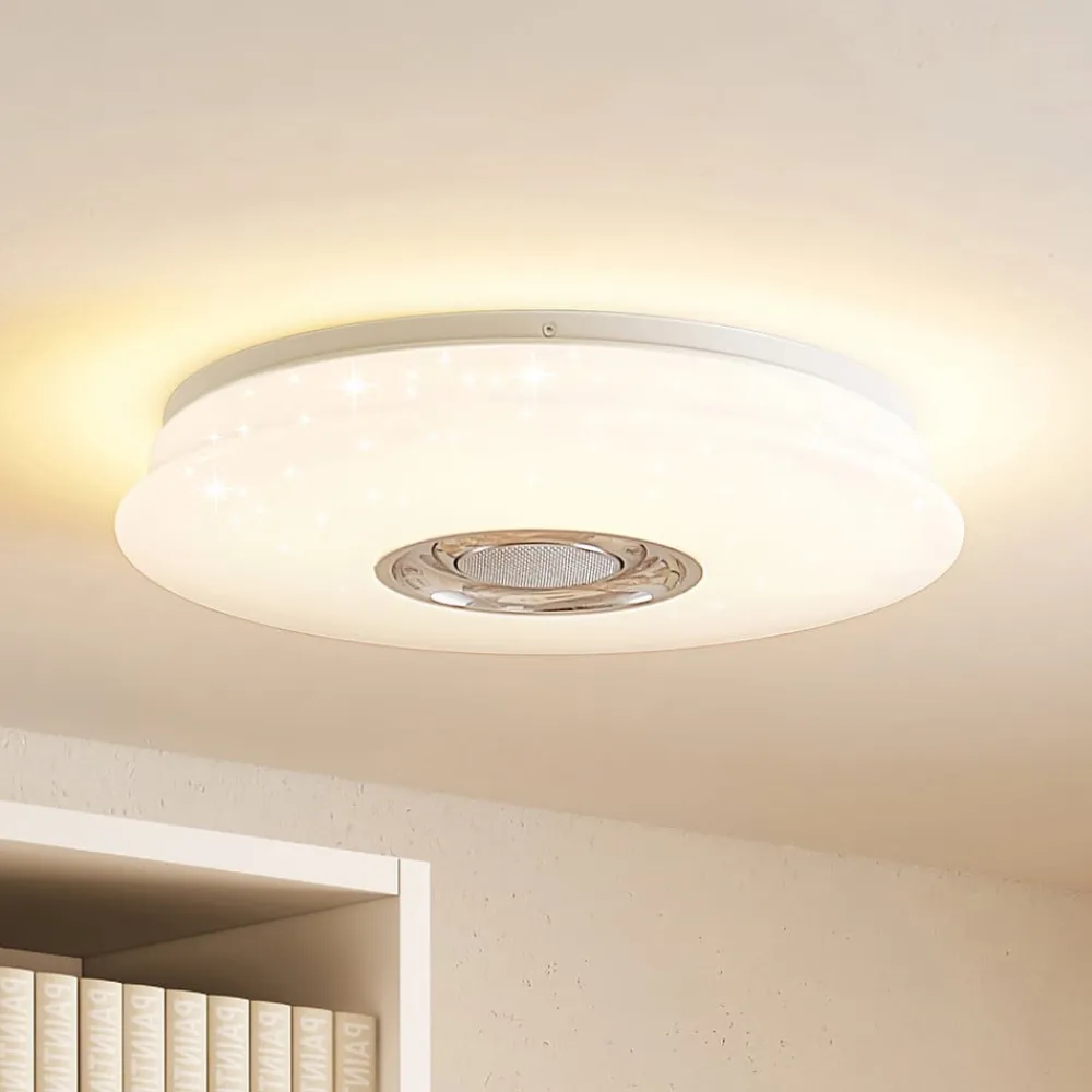 Lindby LED-loftlampe Elpida, højttaler, hvid, Ø 39cm