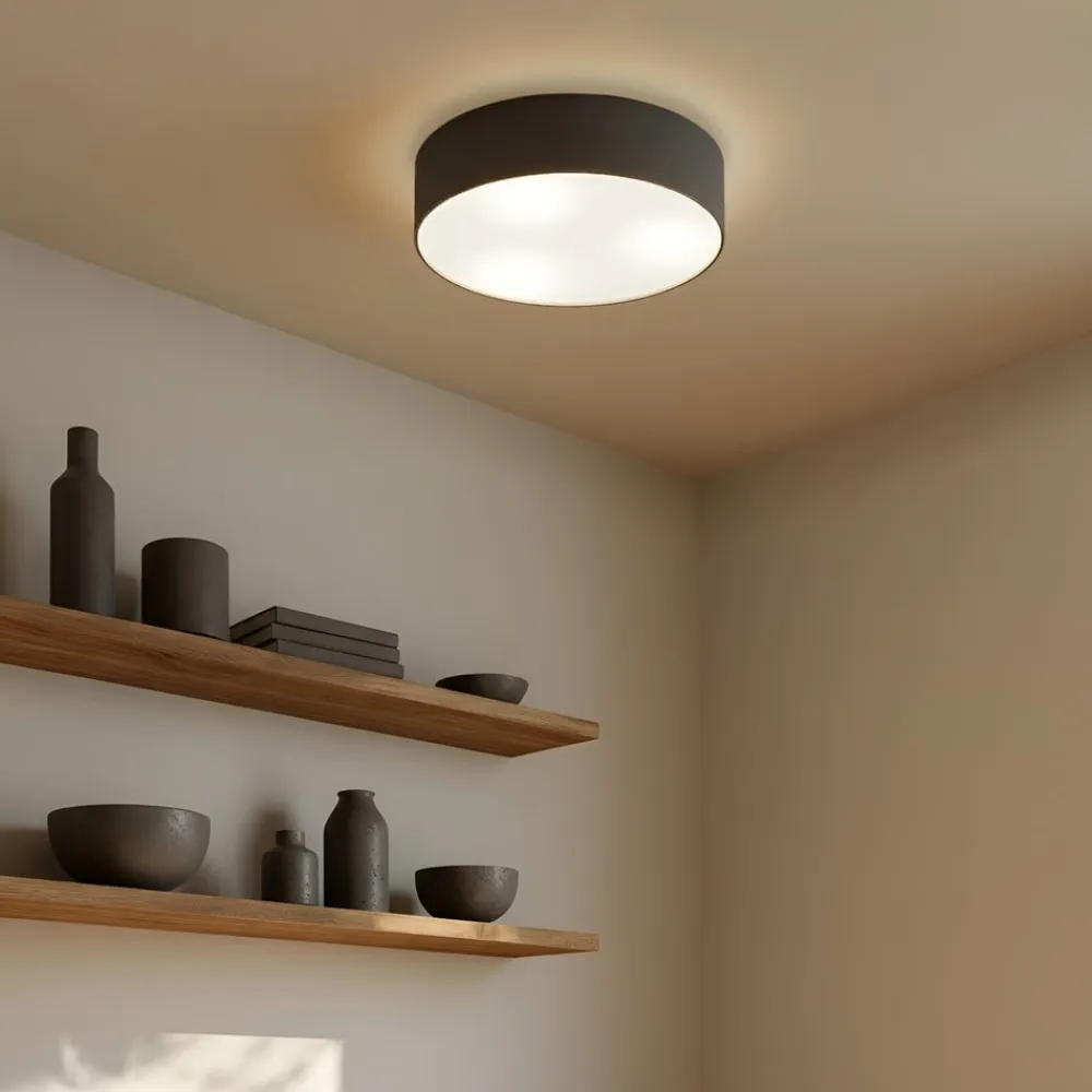 Attraktiv Sebatin grå loftlampe i vævet stof Sebatin er en tidløs grå nuance, en mellemgrå, som de fleste mennesker finder meget stilfuld. Den passer til mange moderne indretninger, da man generelt kan konstatere, at grå i stigende grad kommer frem som trendfarve og frigør sig fra de tilskrivninger, der længe har været knyttet til den. Farven blev betragtet som kedelig og farveløs, men disse associationer hører heldigvis fortiden til, da det er en stilfuld enkelhed, der kendetegner grå meget bedre som farve. Undersiden af loftlampen i stof er også lukket, da den har en hvid diffuser, også med et fint stofbetræk. Det gør, at lyset fordeles bedre, og der er mindre ubehageligt genskin i rummet, når lyset opleves som særligt hyggeligt.