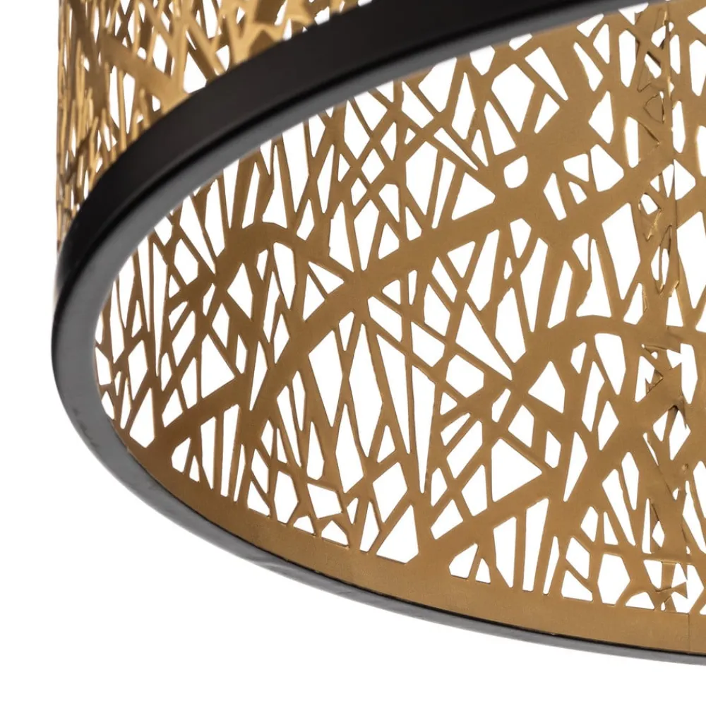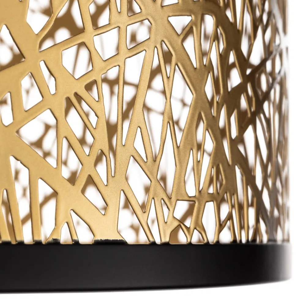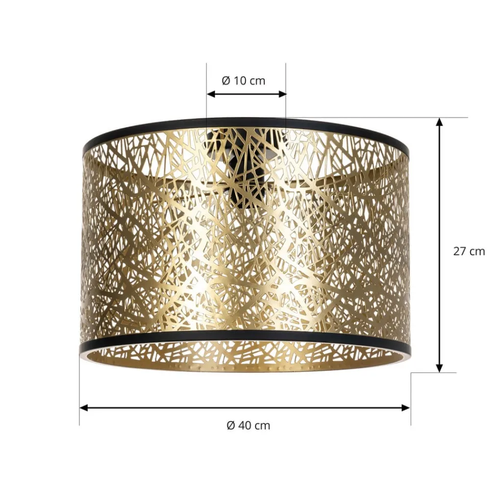 Yonah-loftslampen af stof og metal – den markante ledsager til indendørs brug Lad dig inspirere af denne smukt designede loftslampe. Loftslampen er en fremragende lyskilde til ethvert rum og er et blikfang takket være sit flotte design. Den kan dæmpes ved hjælp af en ekstern lysdæmper (medfølger ikke), så du kan justere lysstyrken efter eget ønske. Loftslampen er udstyret med en E27-fatning. Den smukke lampe har et flot design og skaber en behagelig atmosfære i dit hjem. I Lindby-mærkekvalitet står lampen i farverne guld og sort for vellykket design og en overbevisende følelse af at bo. Den passer nemt ind i enhver indretningsstil og kan ikke kun bruges som belysning, men også som et vidunderligt dekorativt element. Skab et tiltalende lysspil inden for dine fire vægge med denne lampe.