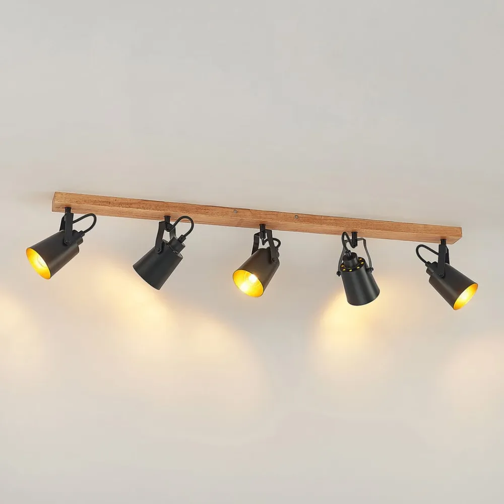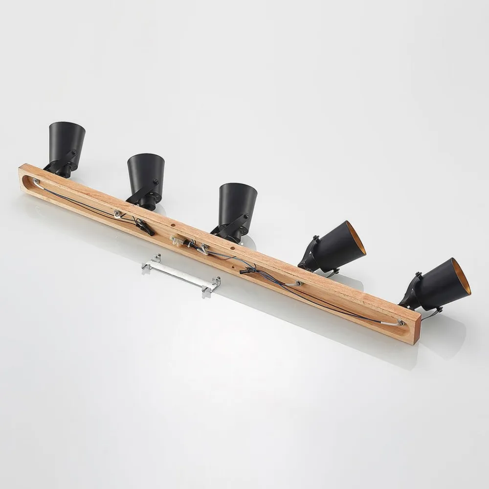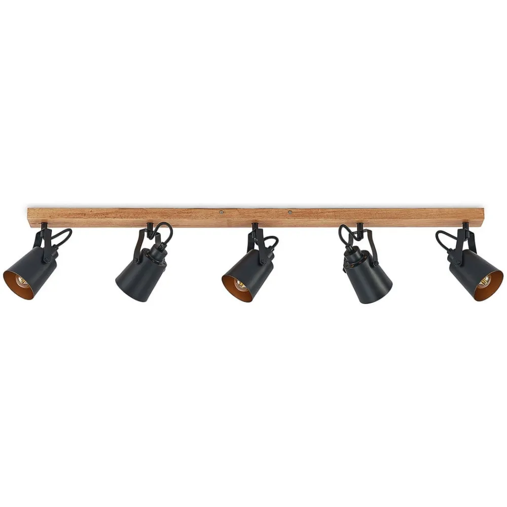 Lindby Loftlamper|Spotlights>Kimban loftspot, 5 lyskilder, 106 cm, træ, metal
