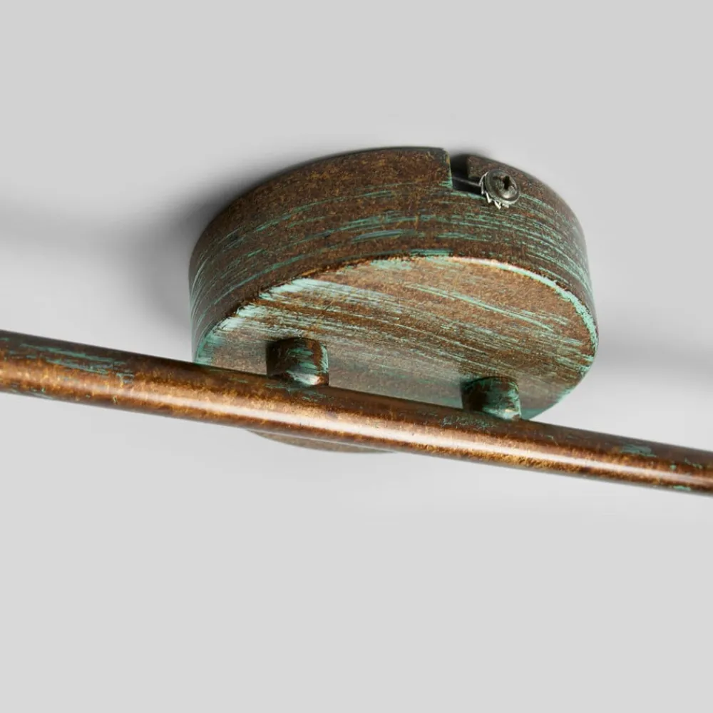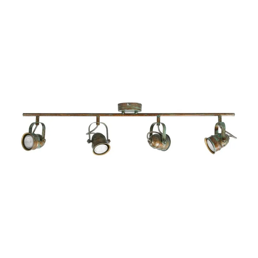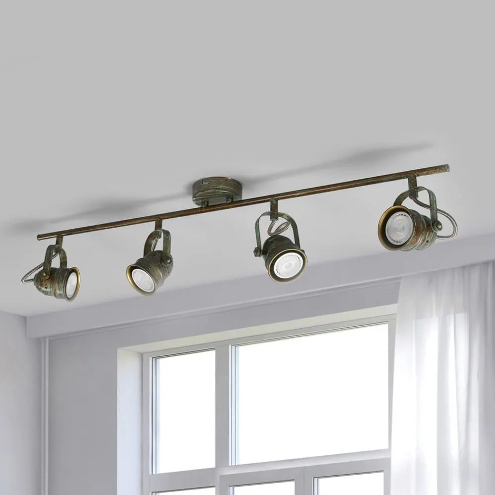 Lysstærk Leonor loftspot med verdigris-finish Leonor kan bruges som spotlight i både køkken og stue. Hvis du ønsker det, kan du selvfølgelig også installere loftlampen i andre rum. Under alle omstændigheder er det nyttigt, at skærmene er bevægelige, og at deres orientering derfor er variabel. Det gør det lettere at tilpasse lysforholdene til de lokale forhold. Farvemæssigt dominerer verdigris-looket loftspottens overflade og giver indtryk af et armatur, der er ældet naturligt over tid. Leonor er derfor et ægte HighLight for dem, der kan lide at omgive sig med antikt udseende interiør.