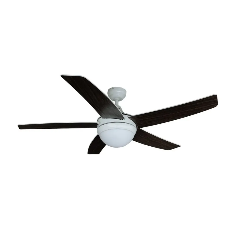 Moderne loftsventilator Auraya med fem vinger i hvid og lys eg Auraya er en praktisk loftsventilator og stilfuld belysning til indendørs brug. Den er lavet af MDF og stål og fås i en attraktiv farvekombination af hvid og lyst træ. Den kan også udstyres med passende lyskilder, som garanterer blændfri belysning takket være den matte diffusor. Rotorbladene har en elegant farve på begge sider: hvid eller mørkt trælook. Du bestemmer selv, hvilken side du bedst kan lide. Auraya-funktionerne giver dig mulighed for at skifte mellem fremad- og bagudrotation. Derudover kan loftventilatorens rotation og lys nemt styres via en fjernbetjening, som er inkluderet i leveringsomfanget.