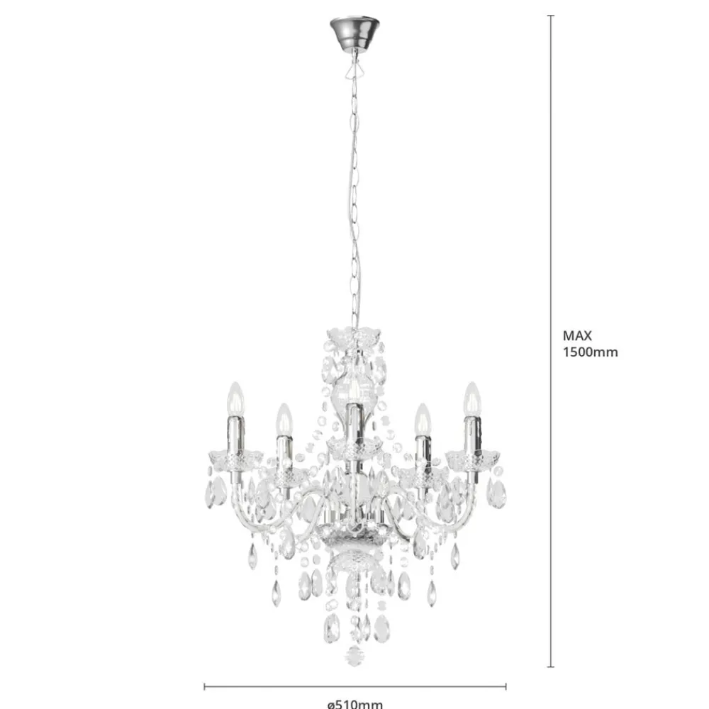 Lindby Lysekroner>lysekrone Merida, krom, metal, 5 lyskilder, Ø 52 cm