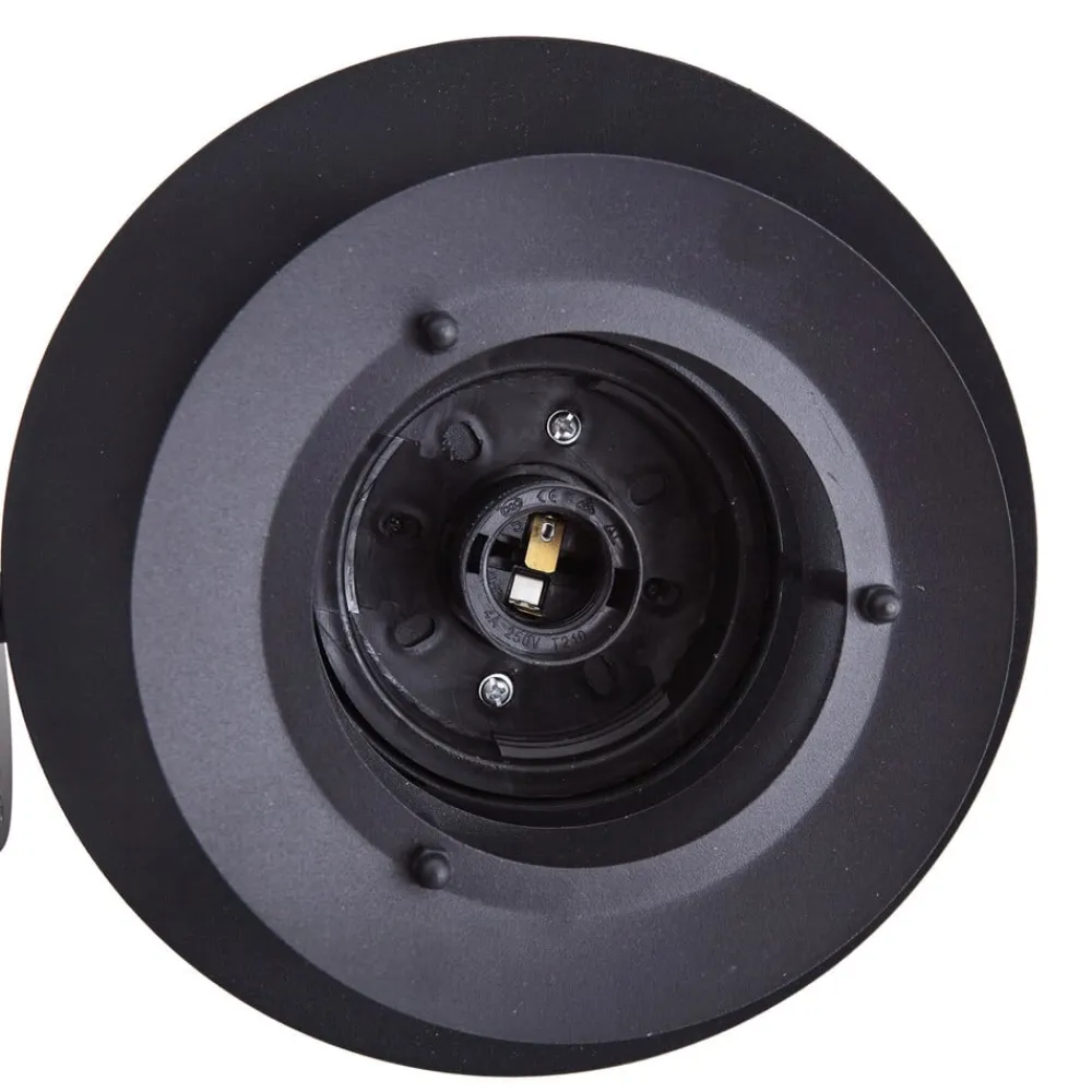- Vægbeslag – Ø 11 cm, fremspring 2,5 cm; skærm – Ø 9,5 cm, højde 16,3 cm