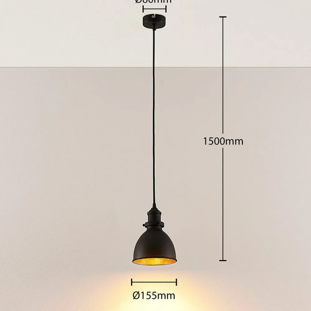 Lindby pendellampe Jasminka, sort/guld, metal, 1 lyskilde.