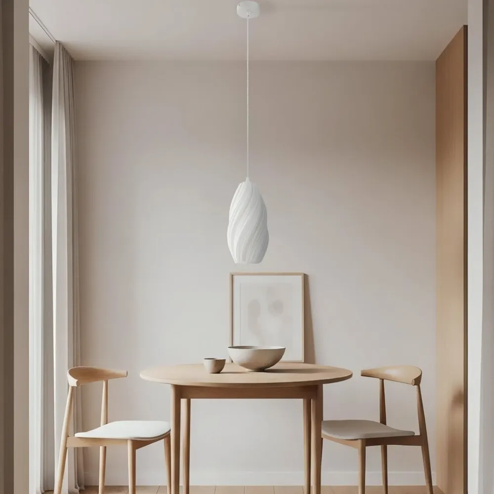 Pendel Nuvia, designet af Ingo Thiele, forener moderne design med elegance. Det særlige ved denne lampe er, at den er fremstillet ved hjælp af 3D-printteknologi. Lampen er fremstillet af polyethylenterephthalat og passer perfekt ind i moderne rum. Den hvide farve giver en klar, stilfuld æstetik, der kan kombineres på mange måder.
