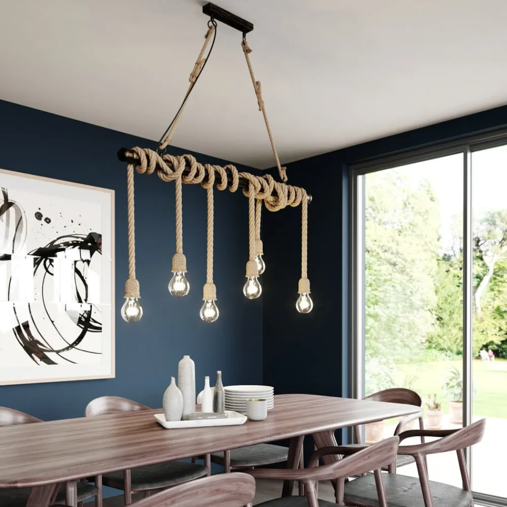 Vær den første til at anmelde “Lindby Pendellamper|Pendellamper>pendellampe Hajo, 100 cm, 6 lyskilder, rebpendel” Annuller svar
