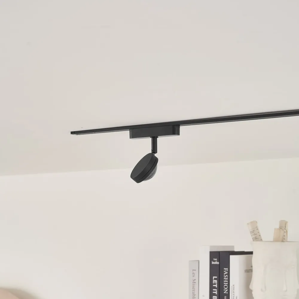 Lindby Skinnesystem>LED-spot 48 V Lumaro, sort, Ø 7,3 cm, aluminium, dæmpbar