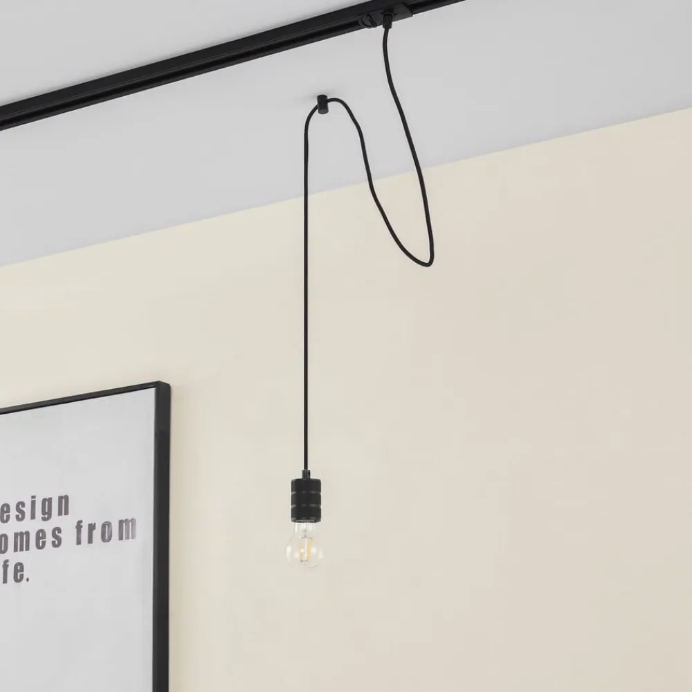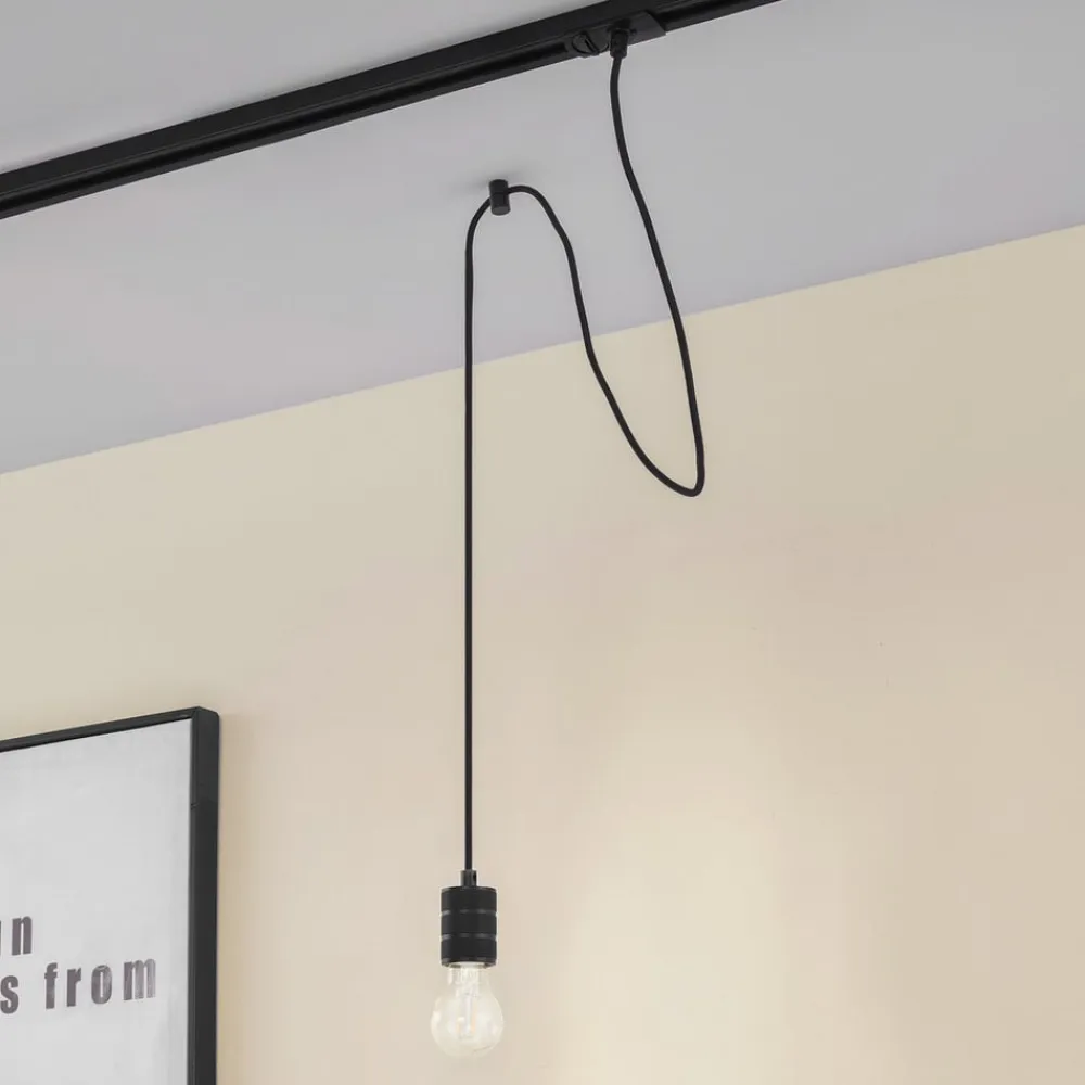 Lindby Skinnesystem>pendellampe Linaro, Ø 4,6 cm, sort, 1-faset, E27
