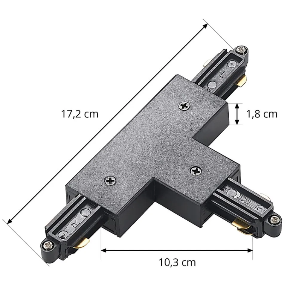 T-forbinder i sort til Linaro 1-faset skinnesystem Den sorte T-forbinder er ideel til skinner i et 1-faset skinnesystem for at opnå en visuelt diskret forbindelse.